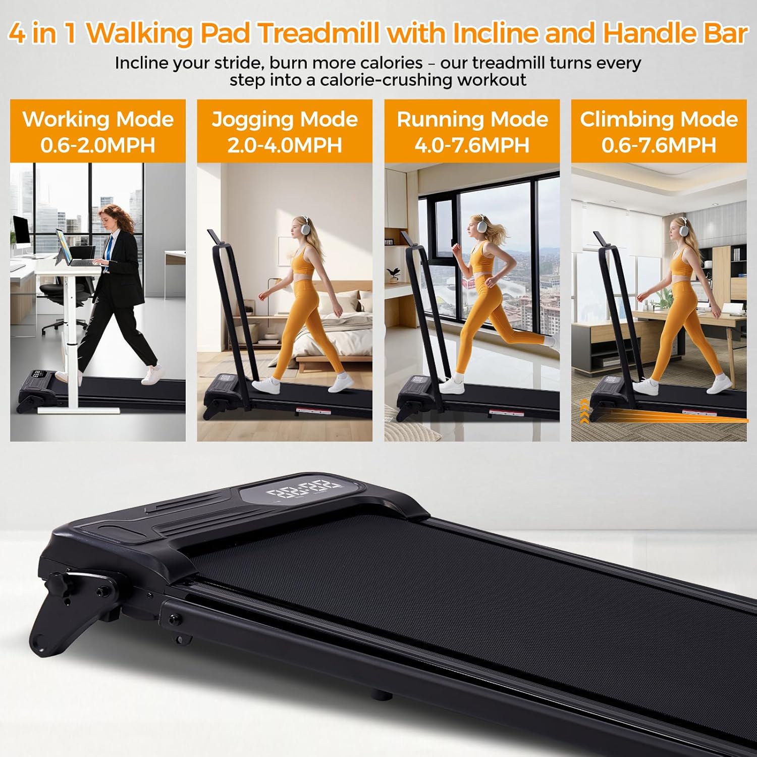 【Office & Home Ready】Transform work and fitness with this portable treadmill with handles. Foldable design converts it into an under desk treadmill, while also serving as a walking pad treadmill for home small, making it perfect for office workouts or home cardio sessions.