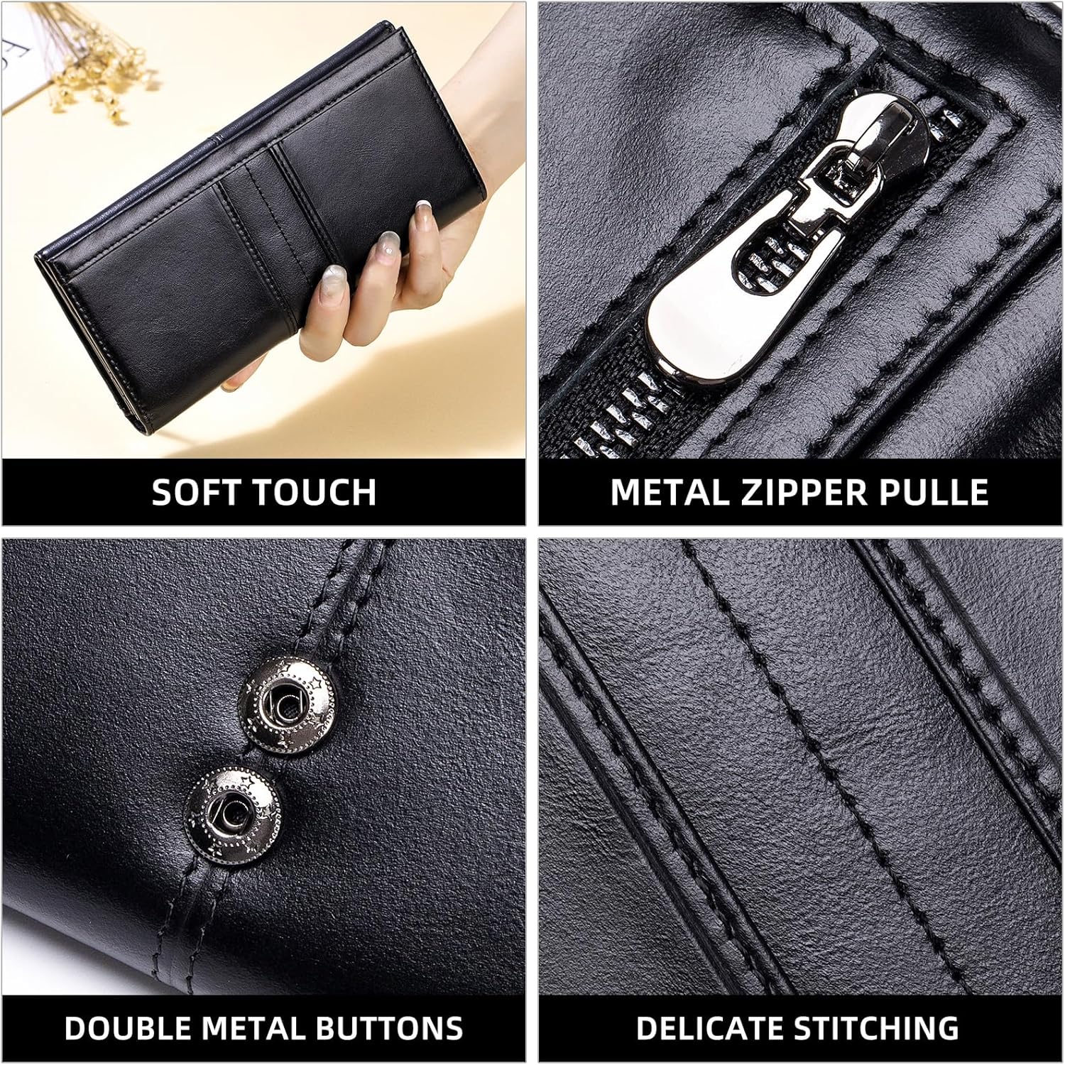 Genuine Leather: Handcrafted from genuine leather with reinforced fine stitching and premium metal zipper, offers durability and a premium feel, stay stylish and organized with this slim bifold wallet for women