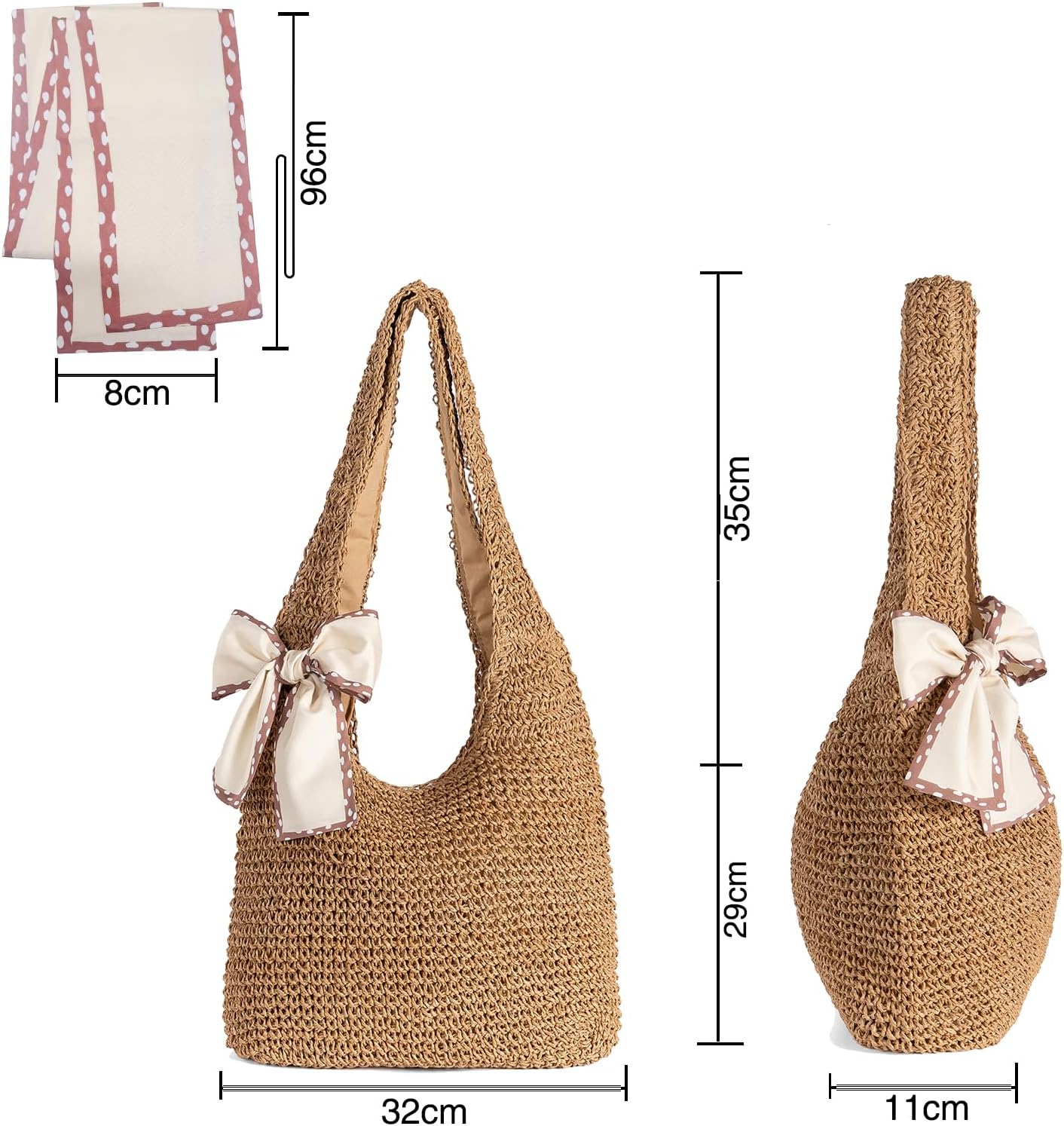 shoowyees Straw Beach Bag for Women – Handmade Raffia Woven Tote Handbag, Summer Mesh Beach Purse for Vacation Holiday