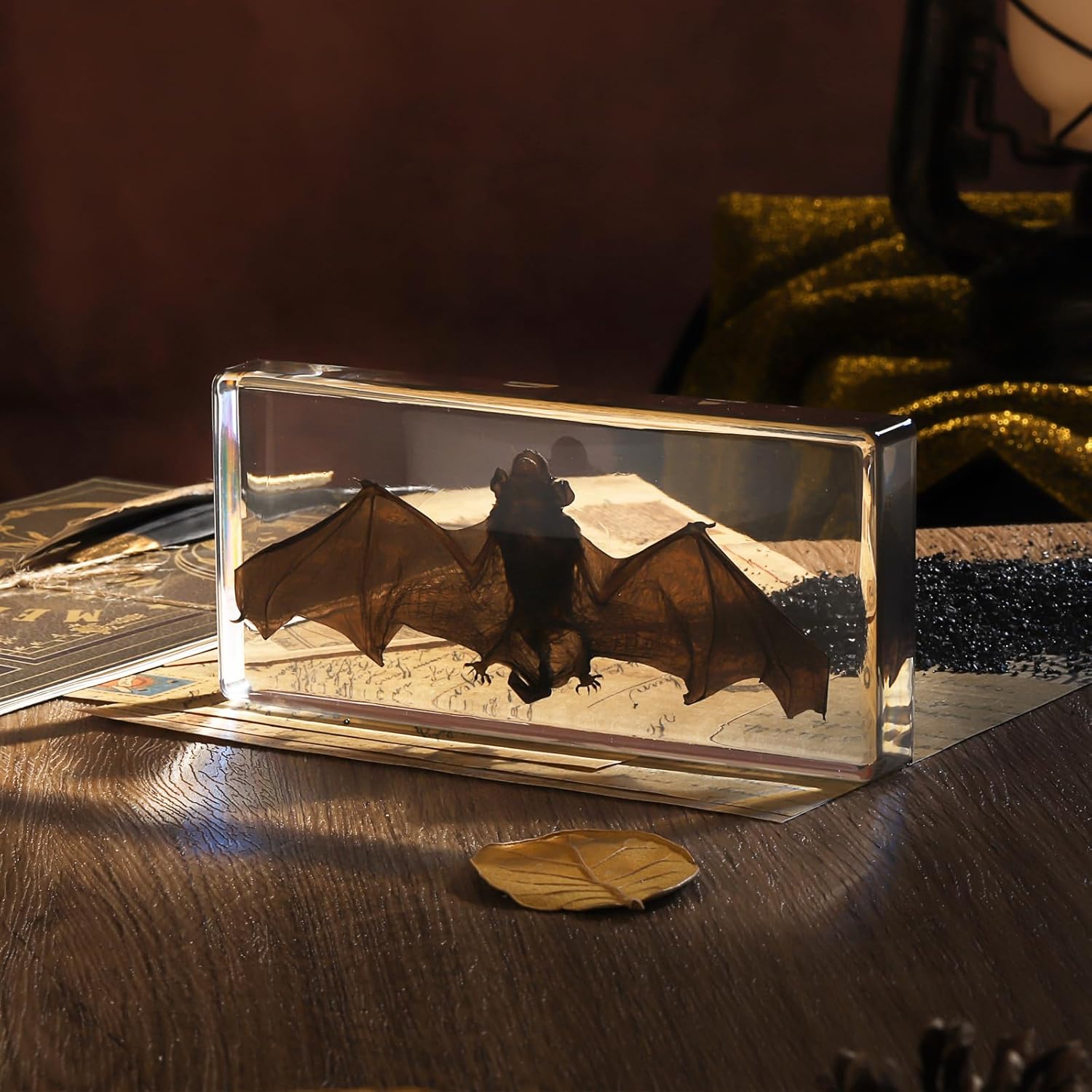Taxidermy Bat, Real Bat Specimens Animal Specimen in Resin for Science Classroom Science Education, Great Gift for Fans of Taxidermy, Animal Skull, Oddities, Biology(5.5×2.5×0.7 Inch)