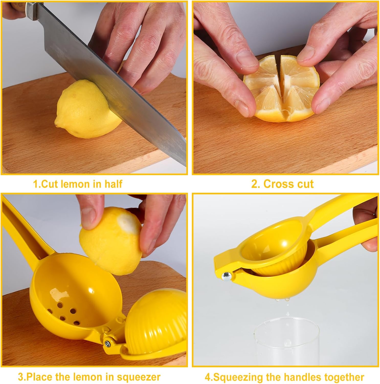 The Lemon squeezer is made by food grade safe material, you don’t need to worry about the rusted or health problem while using.This Lime Squeezer is heavy duty and easy to squeeze out every juice drops of your lemon.