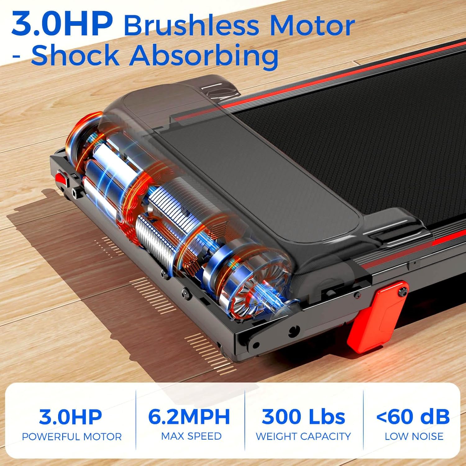【Powerful And Quiet Motor】: The Walking pad Treadmill has a brushless motor with a maximum power of 3.0HP and can withstand users up to 300 lbs. This walking pad treadmill with handles is equipped with safety handrails to maximize the safety of your workout, which makes it an ideal choice for apartments and homes, offices, and healthy workouts.