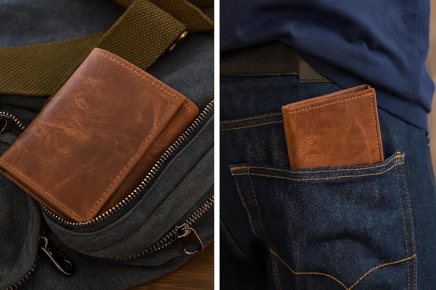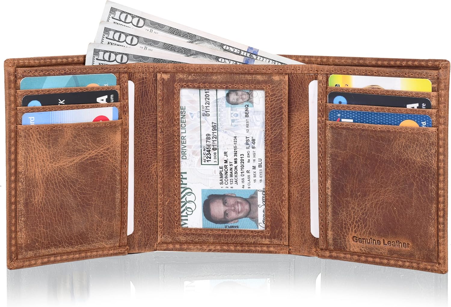 Real Leather Trifold Wallet For Men – Slim Ultra Thin Tri Fold Front Pocket Minimalist Credit Card Holder ID Window Gift Men