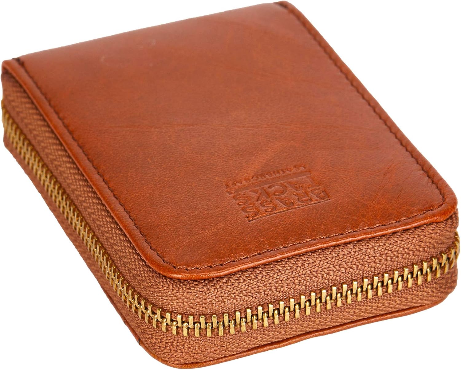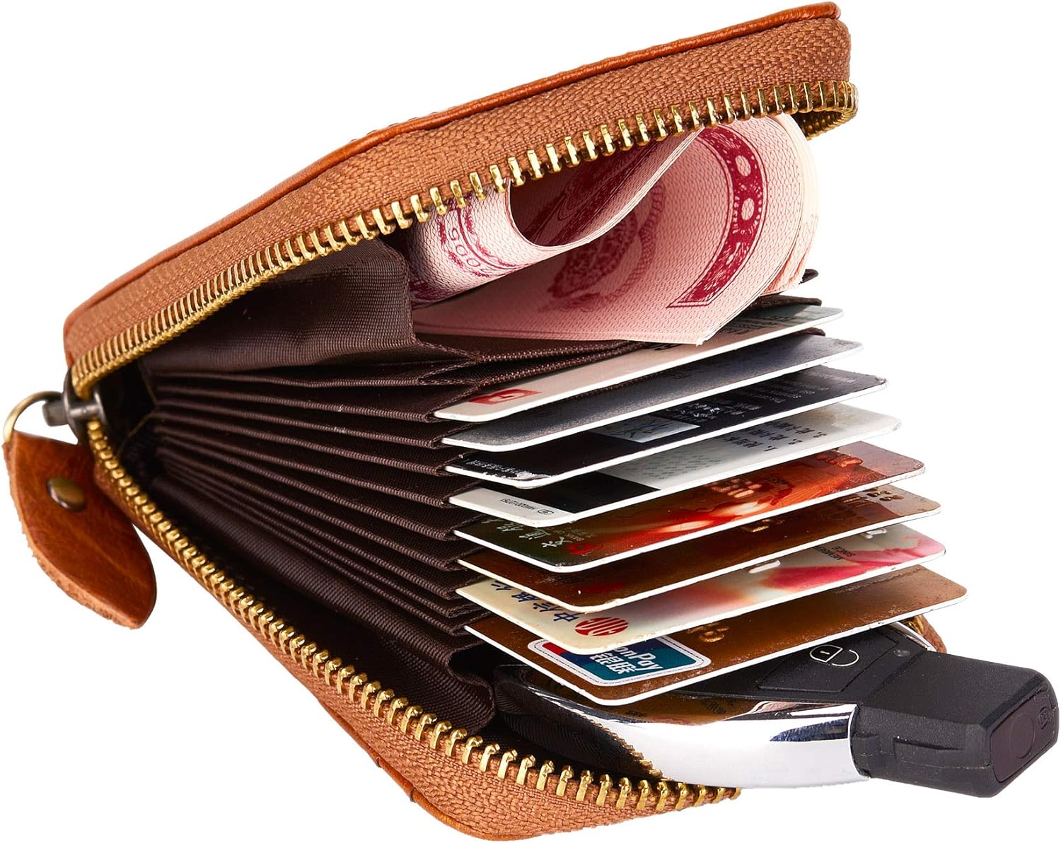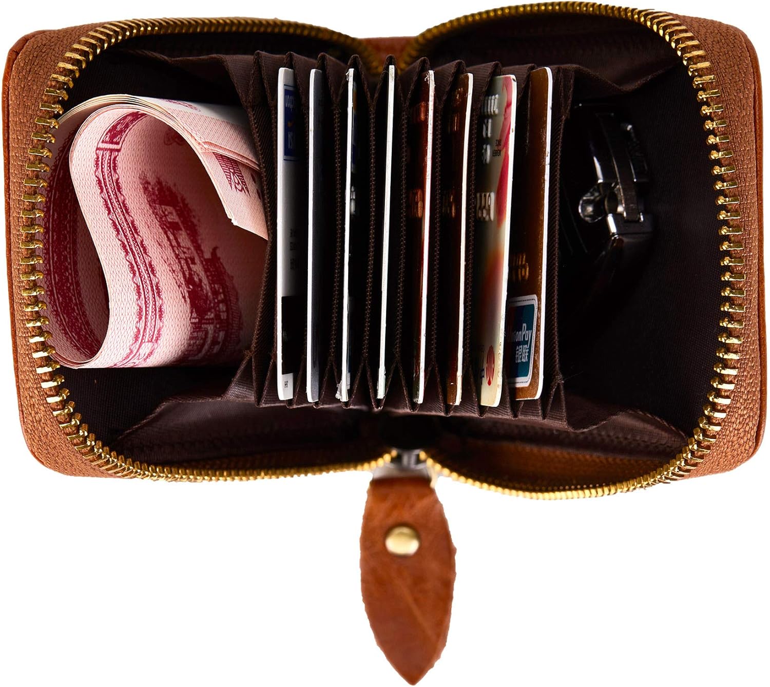 Vintage Full Top Grain Leather Wallet RFID Blocking Multi Card Case with Zipper Pocket Card Holder for Men Women Gift Box