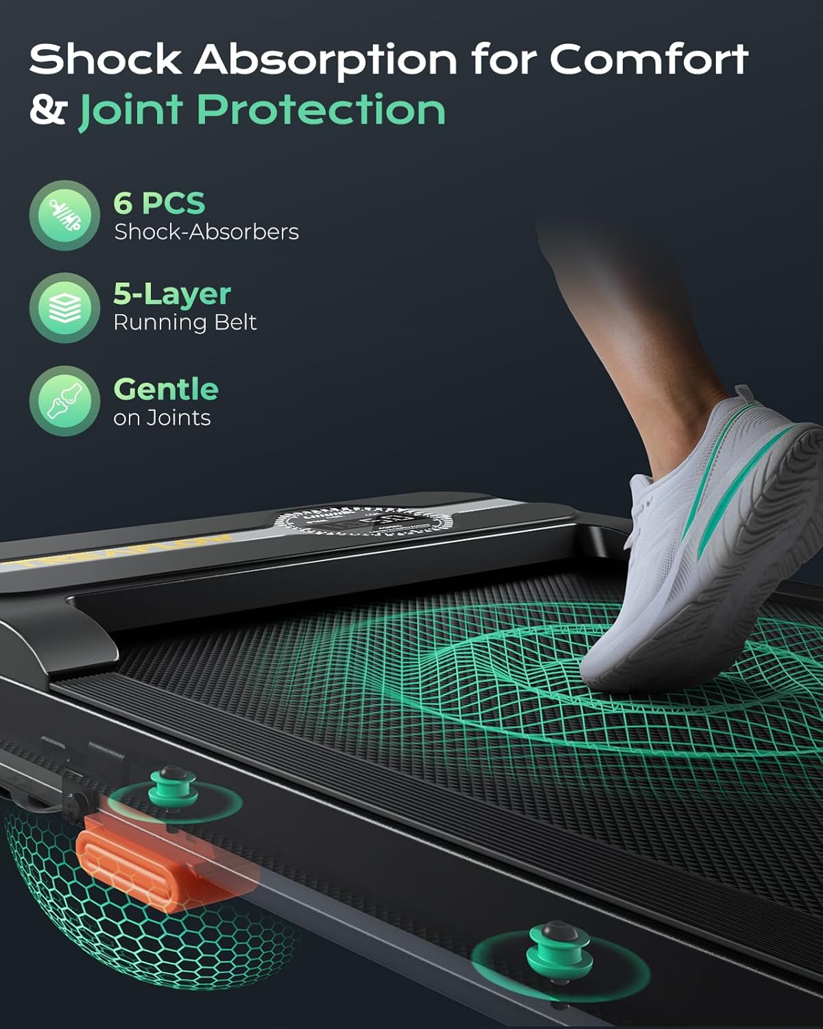 【Anti-Slip & Shock-Absorbing Belt】:Equipped with a 5-layer non-slip running belt and 6 built-in silicone shock absorbers, it provides extra cushioning for knees and joints, ensuring safe and comfortable walking or light jogging.