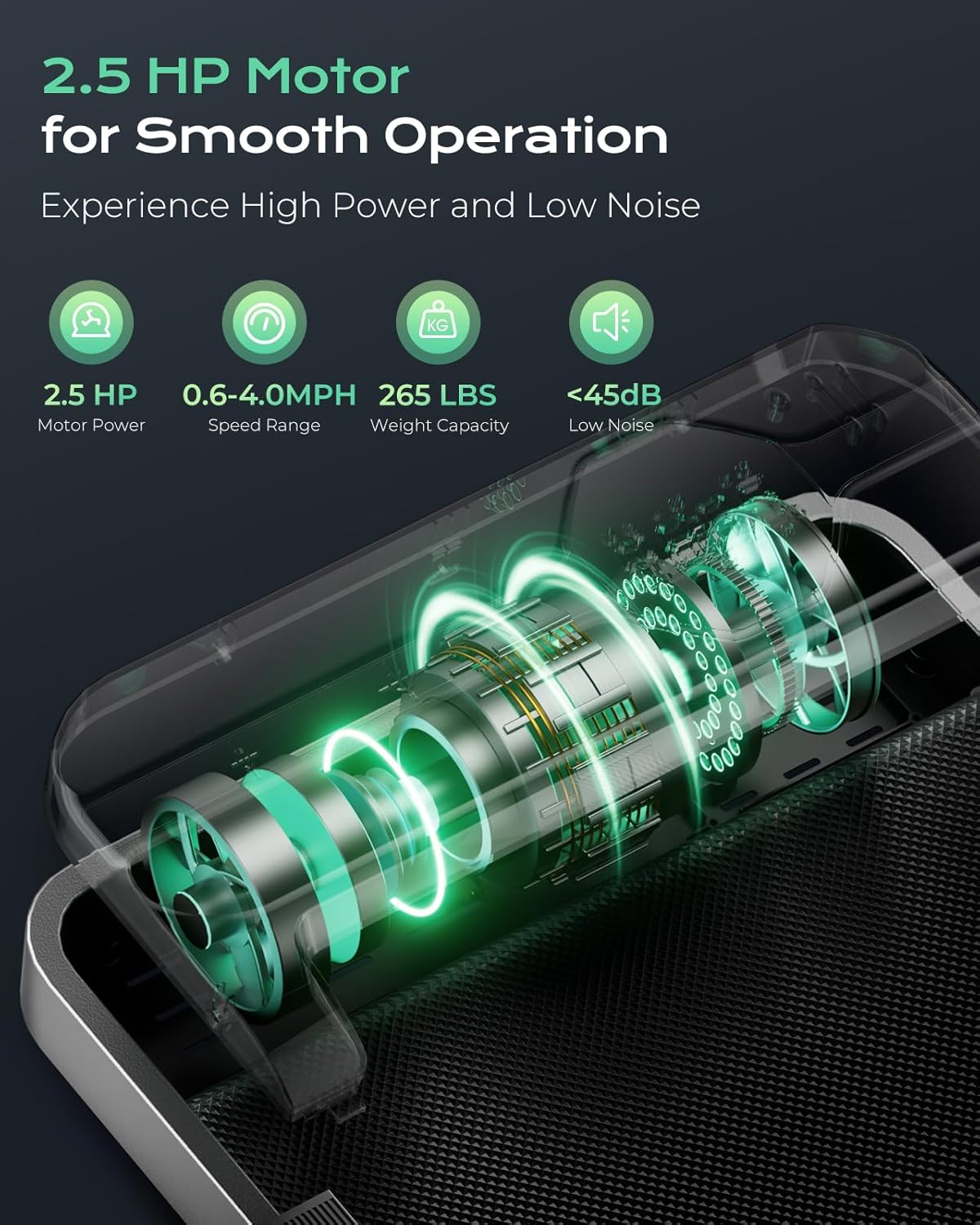 【Multiple Speed Modes】:Supports walking and light jogging with three modes: 0.6–1.5 MPH for work mode, 0.6–2.5 MPH for casual walking, and 2.5–4.0 MPH for a quick jog to refresh your mind.