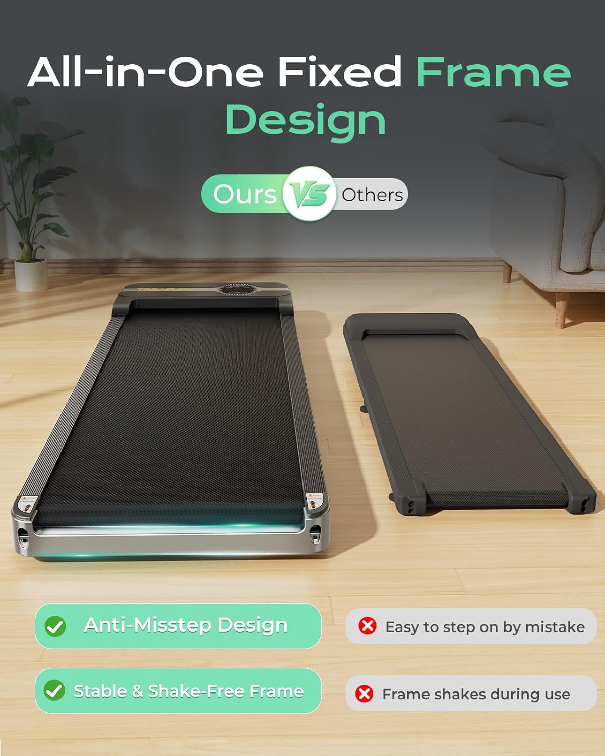 【8% Incline Walking Pad】:This under desk treadmill features an 8% fixed incline to simulate uphill walking, helping you burn calories up to 45% faster and strengthen leg muscles. Speed range 0.6–4.0 MPH, perfect for home and office workouts with smooth, quiet performance.