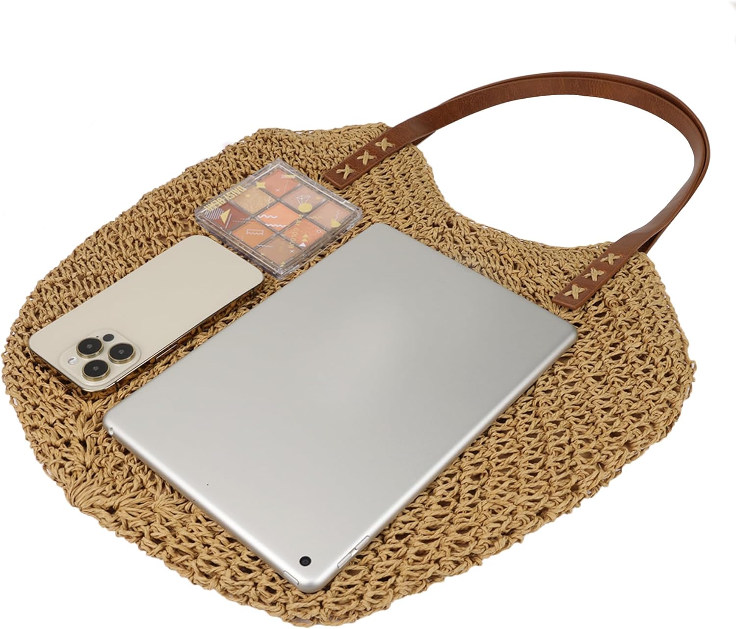 Whether you’re looking for a stylish and functional straw beach bag or an tote for summer, our classic straw tote bag is a good choice for you. Handwoven of natural straw, finished with faux leather handles, the straw shoulder bag is lightweight and spacious to carry all your essentials while looking stylish and elevate your summer outfits. It’s a summer staple that will never be out of date. Perfect for beach, travel, vacation, picnics, dating or everyday use
