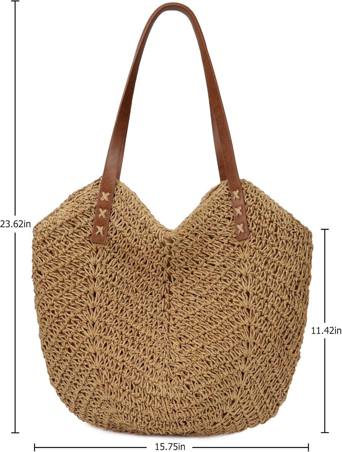 Womens Large Straw Tote Bag Handmade Woven Beach Shoulder Bag Top Handle Purse for SummerWomens Large Straw Tote Bag Handmade Woven Beach Shoulder Bag Top Handle Purse for Summer