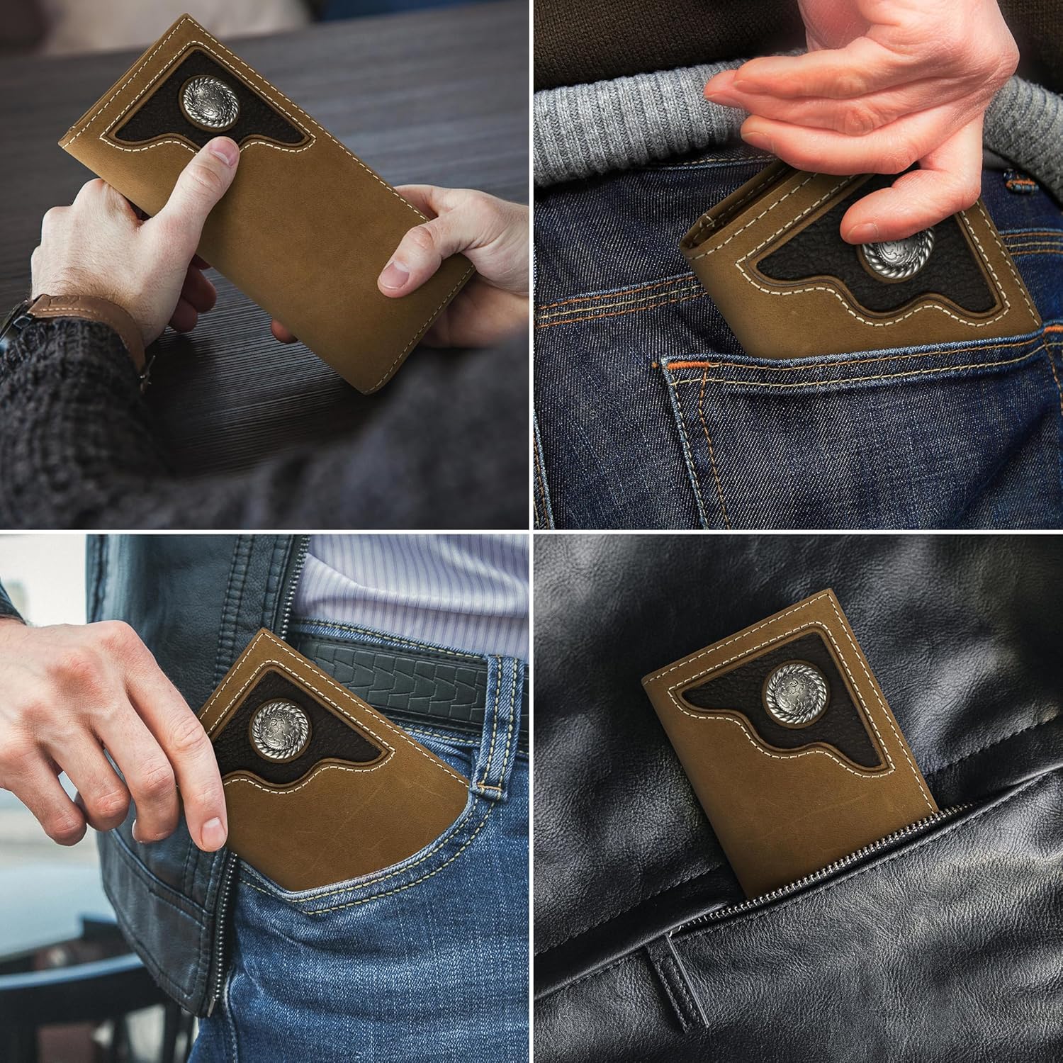 DURABLE GENUINE LEATHER BUILD:Leather wallets for men demand resilience: Crafted from quality genuine leather wallet materials to resist daily wear. This mens wallet maintains structural integrity year after year.