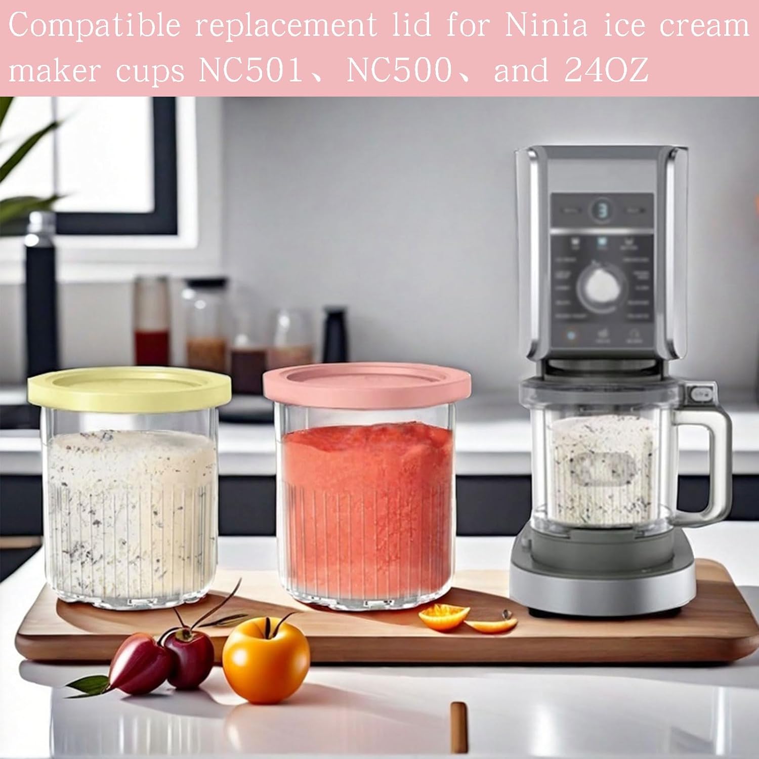 Keep your homemade ice cream fresh and safe in the freezer with FixItRight premium silicone lids,FixItRight ice cream pint containers silicone lids compatible with Ninja Creami NC500 and NC501 series ice cream maker. Each pack includes 2 vibrant lids (1 pink and 1 yellow), adding a pop of color while keeping your creations neatly sealed and leak-free.