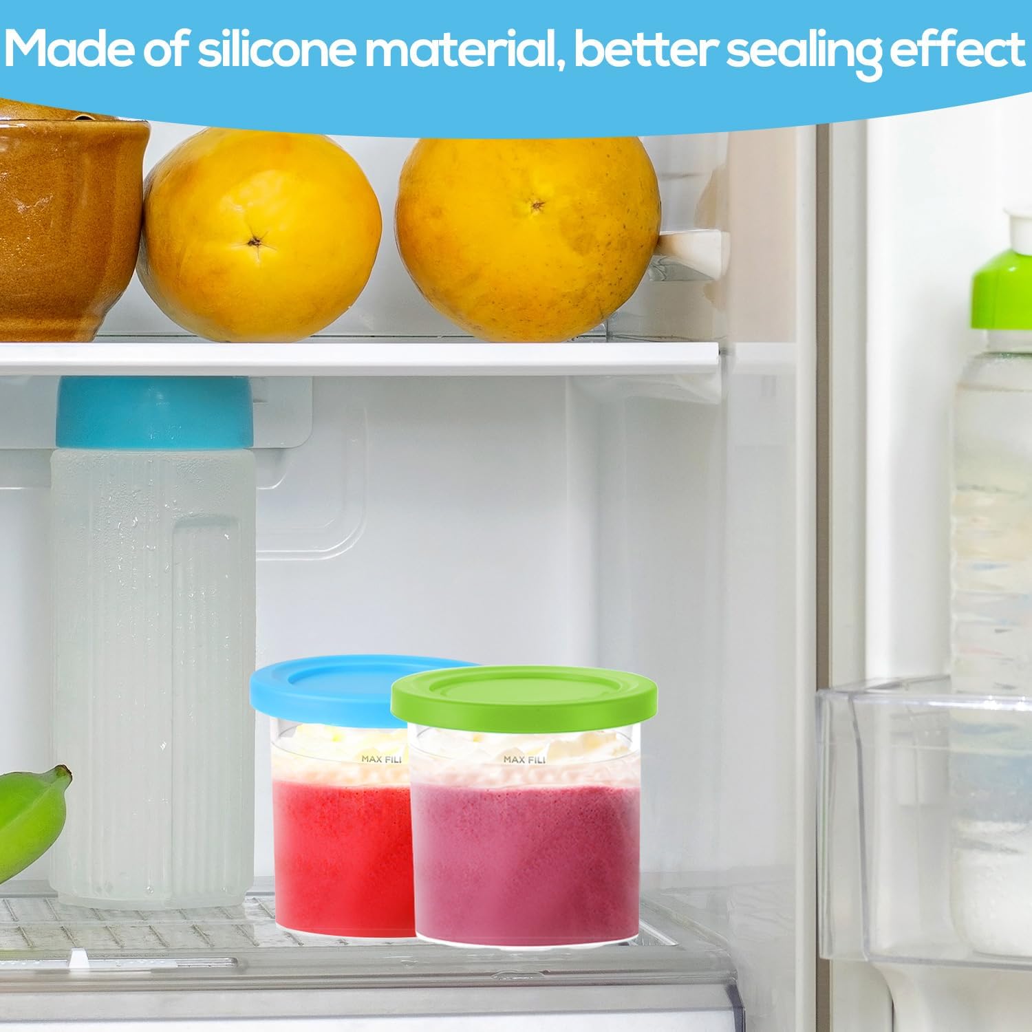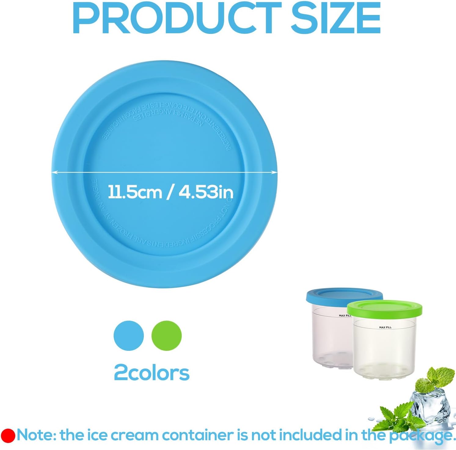 2pcs Ice Cream Cover for Freezer, Diameter 4.53in Silicone Ice Cream Tub Container Covers Replacement Round Food Storage Lids for Ninja Creami NC301 NC300 NC299AMZ Series Ice Cream Maker