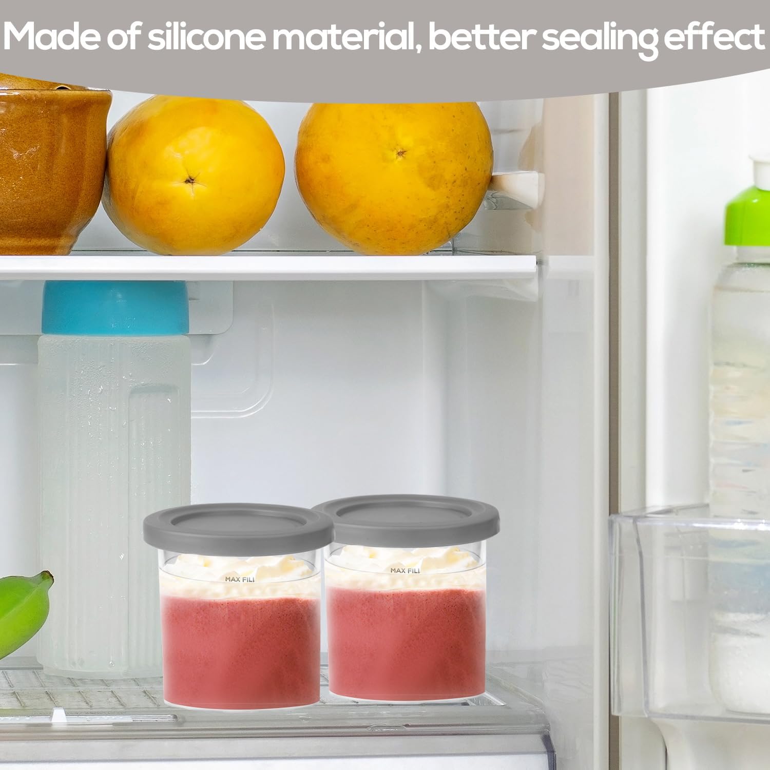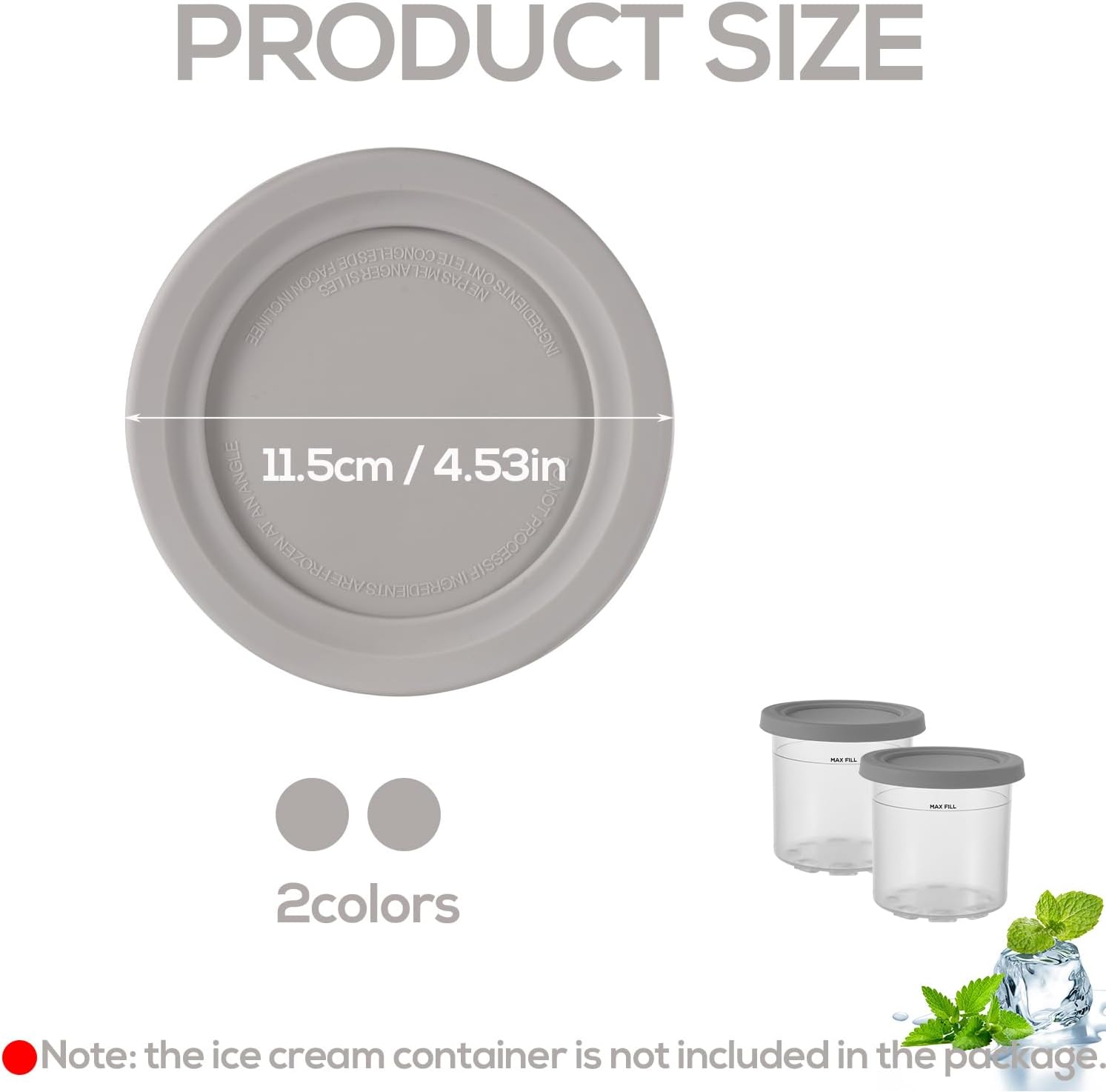 2pcs Round Lids Replacement, Diameter 4.53in Ice Cream Containers Cover Silicone Food Storage Cup Can Lid Compatible with Ninja Creami NC301 NC300 NC299AMZ Series Ice Cream Maker (Grey)