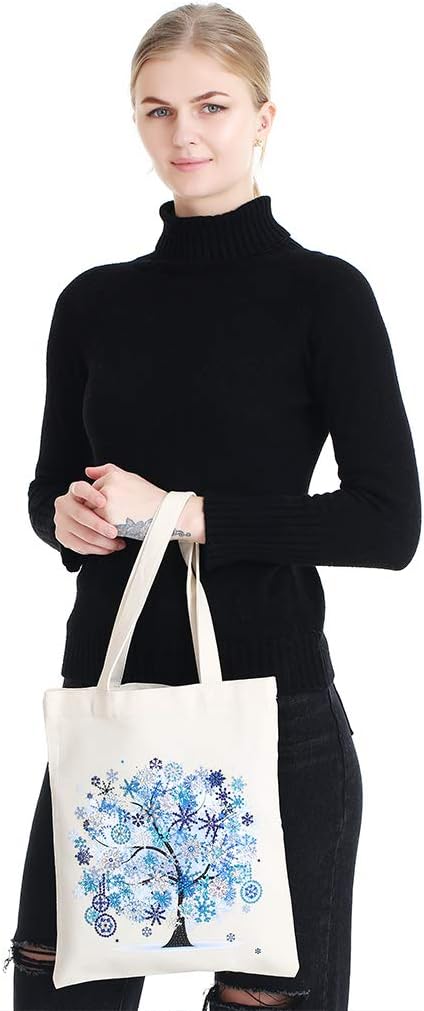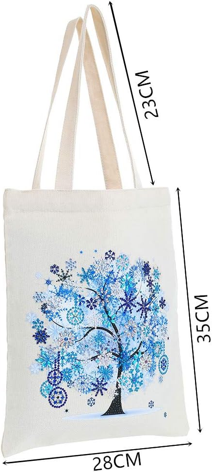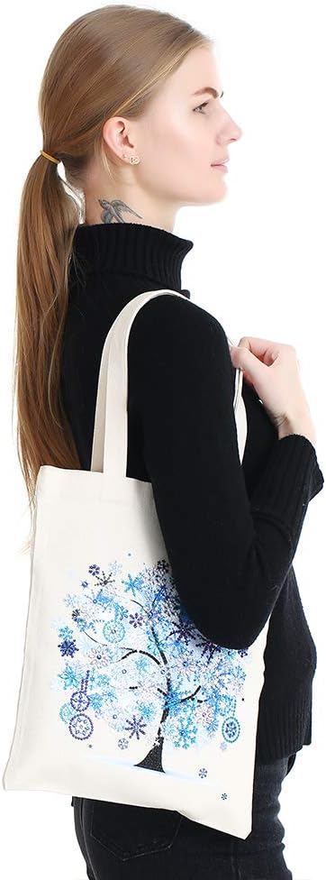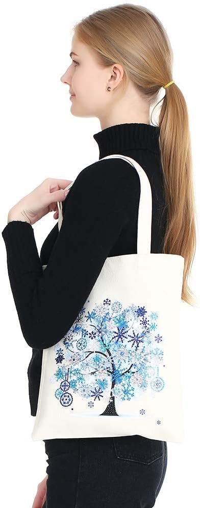 【Handbag Size】: Our art diamond canvas tote painting shopping bag size 28cm/11″W x 35cm/14″H, you can use it to hold your wallet, tablet computer, notebook, books, shoes, clothes, and this bag is also very practical for shopping, travel, work and more, the diamond art painting handbag can keep fruits and vegetables fresh longer than plastic bags, so you can store fruits and vegetables straight into the bag; and these bags are great option for avoiding the use of disposable plastic