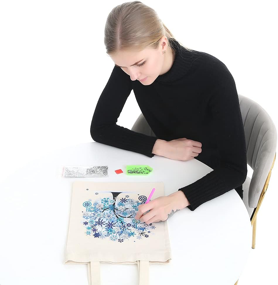 【Include】: Diamond art painting shopping reusbale canvas hand bag, point diamond pen, cube diamond tray, painting glue clay, magic diamonds kit. After purchase our handbags, first use diamonds to complete the painting on the canvas bag. You can complete this diamond painting hangworking with your friend, spend leisure time with your family, share the artifical rhinestone paitning handmade fun