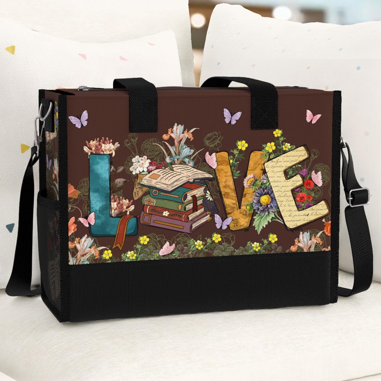 84hoods Large Tote Bag for Women with Pockets and Zipper for Travel, Work, Grocery. Gift for Book Lovers, Librarians.