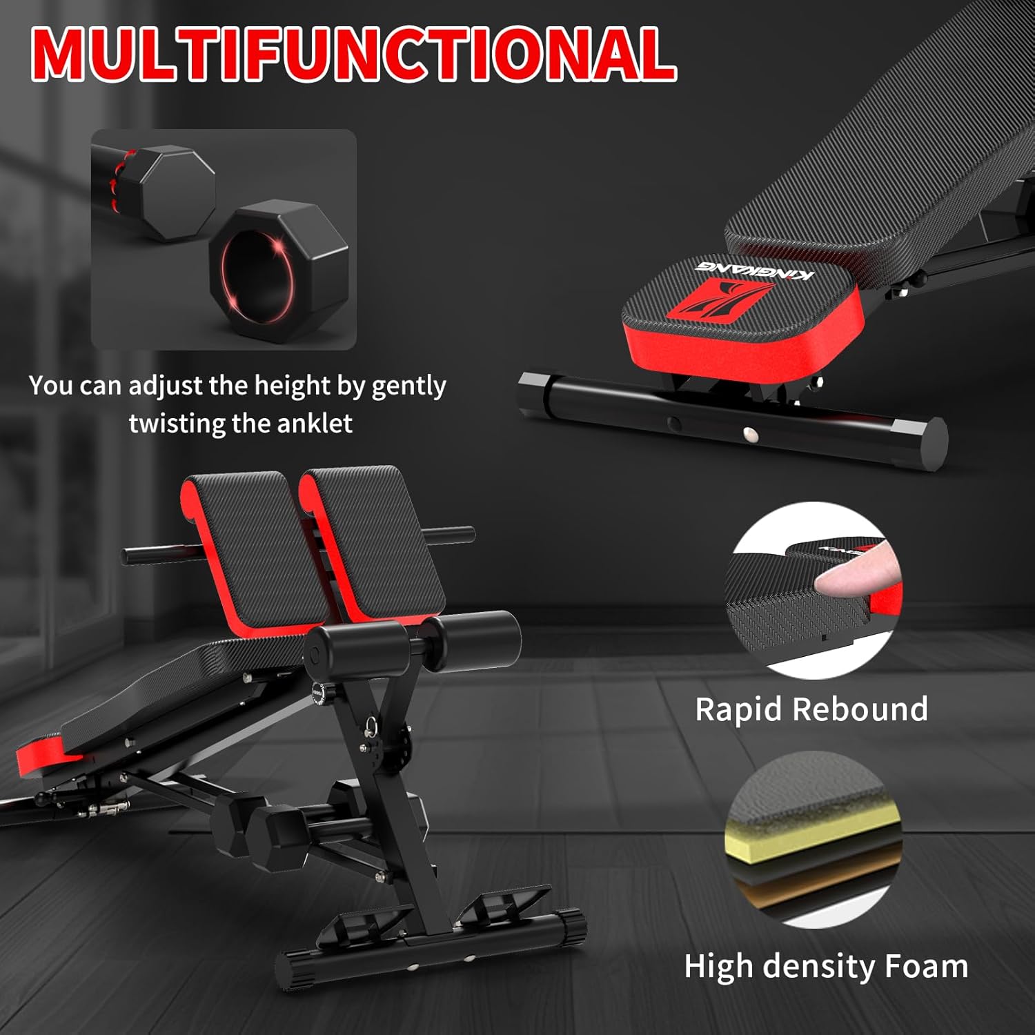 【Special Upgrade】This Weight Bench has 5 adjustable lengths that can be adjusted according to your height to avoid contact between your head and the ground when doing sit-ups.