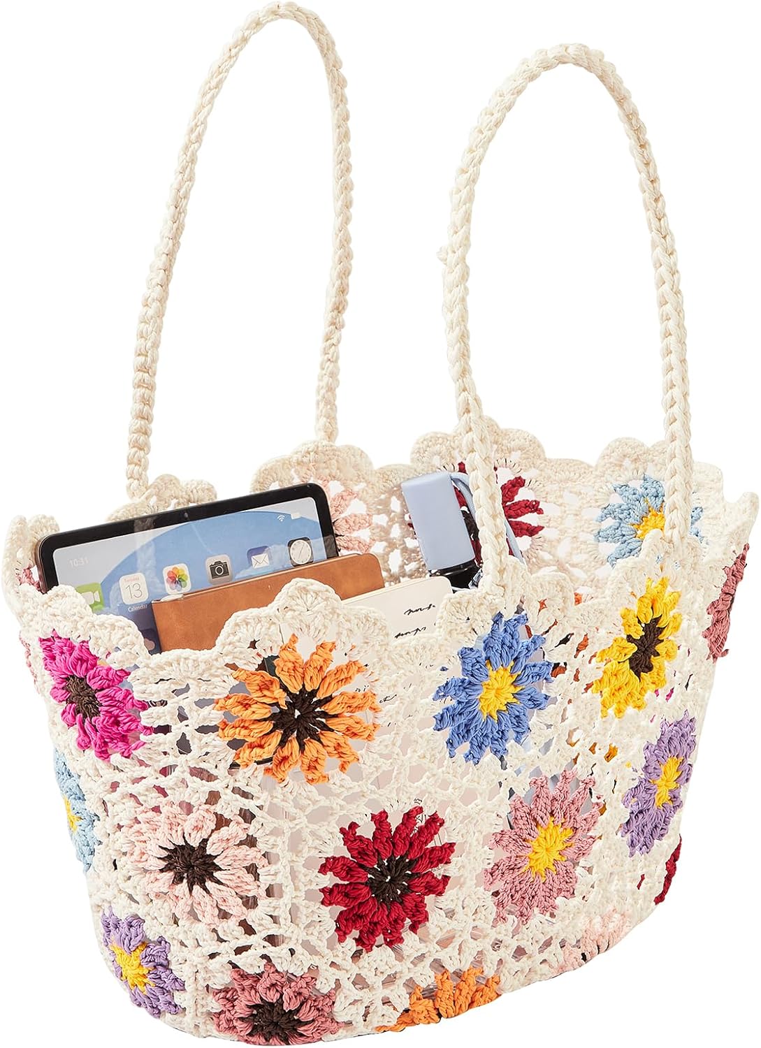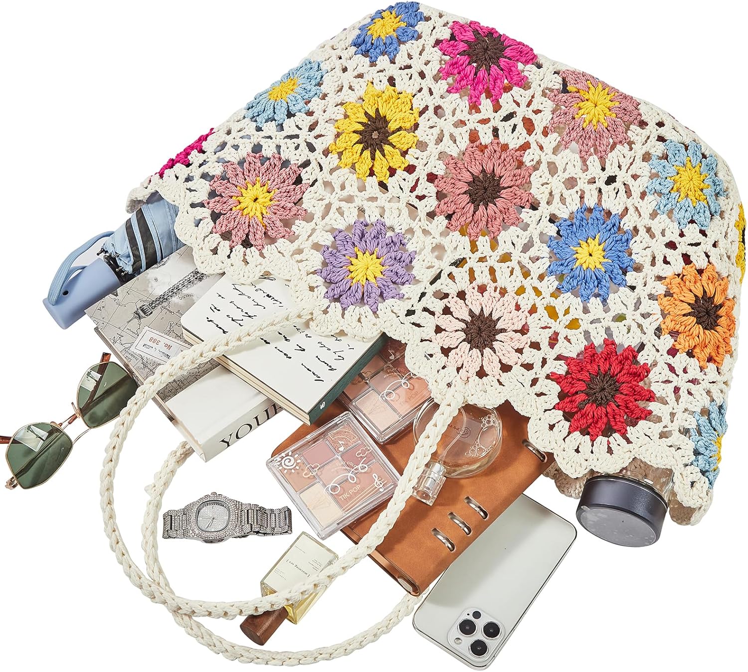 The adorable straw tote bag is casual style with delicate handmade craftmanship and unique daisy flower pattern. This beach straw bag is woven, lightweight and soft texture. Chic and elegant. Perfect for summer beach, travel, daily use or vacation.