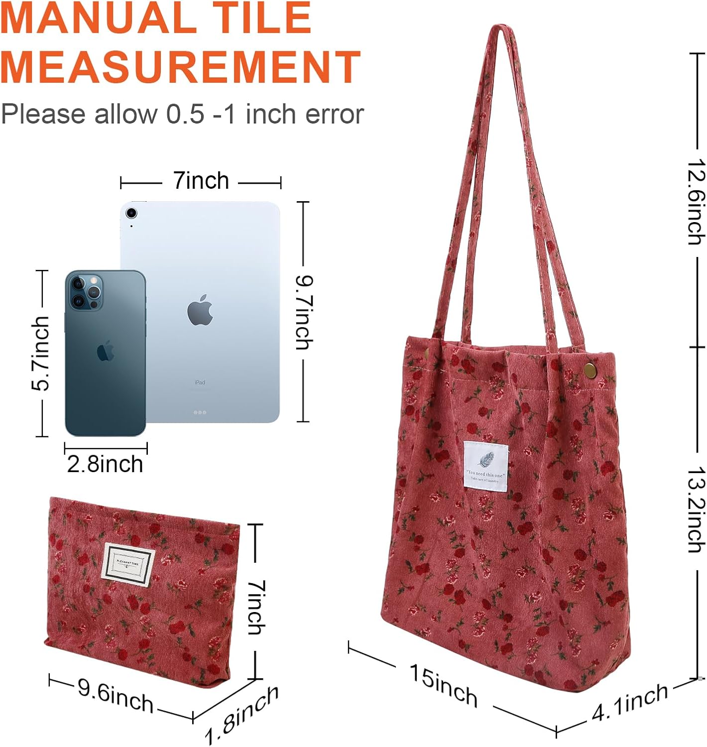 Organized Chic:Experience the perfect blend of organization and fashion with our chic tote bag for women. Boasting a spacious, laptop-friendly main compartment and two inner pockets, it keeps your essentials in order. Crafted from durable corduroy, this trendy tote not only exudes style but ensures a lasting impact, making it a smart investment for the long haul.