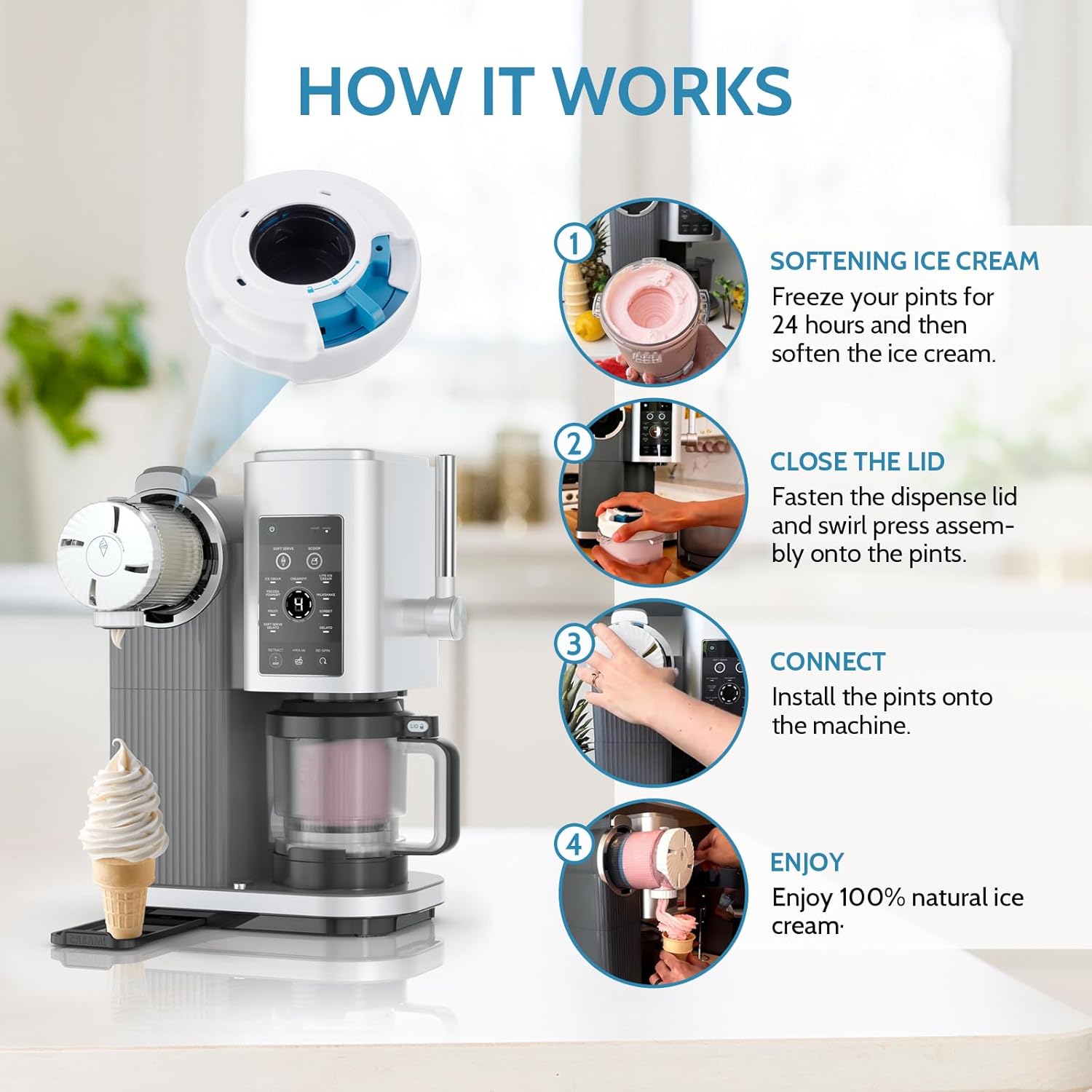【Compatibility】The creami dispense lid and swirl press assembly ONLY compatible with ninja NC700, NC701, NC701Q, CN701C swirl by creami NC700 Series Ice Cream Makers. ⚠️ NOT COMPATIBLE with Breeze (NC100/NC200 Series), Creamy (NC299AMZ or NC300 Series) or Deluxe(NC500 Series)Ice Cream Makers. ⚠️Please check your model to avoid mistaken purchase
