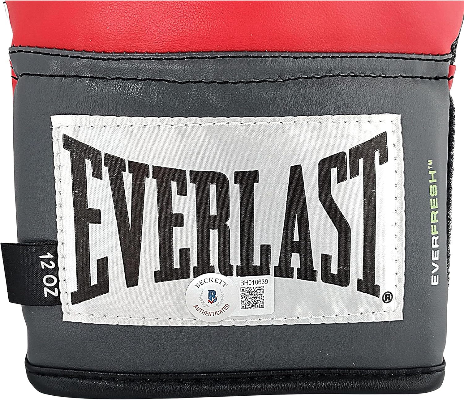 This is a Fernando Vargas Jr. autographed red Everlast right handed full size boxing glove (size 12 oz). Fernando Vargas Jr. signed the glove in black sharpie. This signature has been examined and authenticated by Beckett Authentication Services (BAS), and has been deemed authentic. The Beckett Certificate number is BH010639. As of May 2022, Beckett Authentication Services no longer will be issuing Certificate of Authenticity cards. Please scan the QR code on the certification sticker, to confirm the authenticity, and all pertinent information, within the Beckett Authentication Database. This change will start with the certificate number sequence BF.