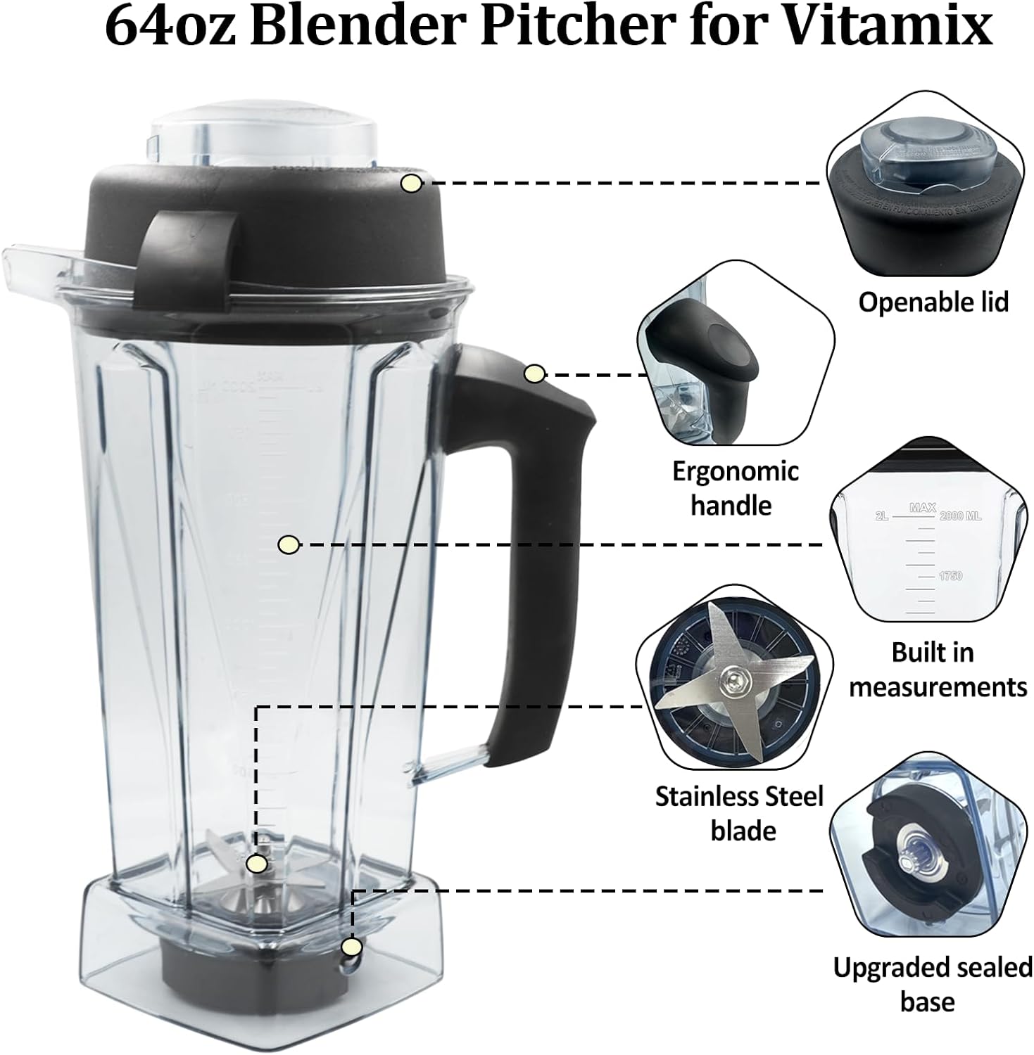 For Vitamix Blender Pitcher 64oz Replacement Container Cup Jar for Vitamix 5200,6000,6300,5300,6500,7500,750,VM0102, VM0103, Classic C-Series/G-Series/Propel/Professional Series, 2-year full warranty