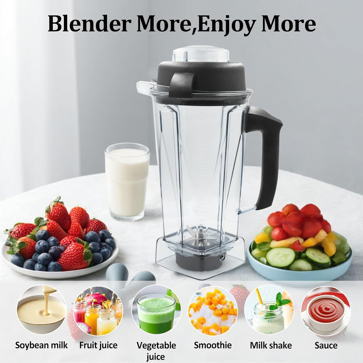 Four Pieces of Stainless Steel Blades: The 64 oz container replacement is capable of blending a variety of ingredients, including frozen fruits, leafy vegetables, raw nuts, ice cubes, and dried foods, etc