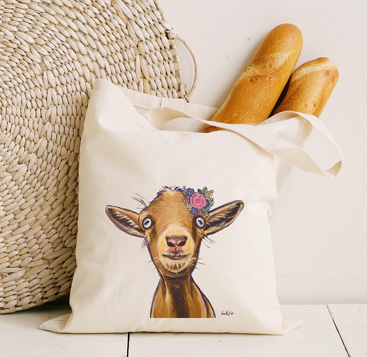 Goat Tote Bag – Goat Gifts for Goat Lovers – Flower Crown goat Totes -Handmade Totes – Goat Canvas Totes – Cute Goat Reusable Shopping Bag – Goat Gifts for Women – Grocery Bag – Handbag – Beach Bag