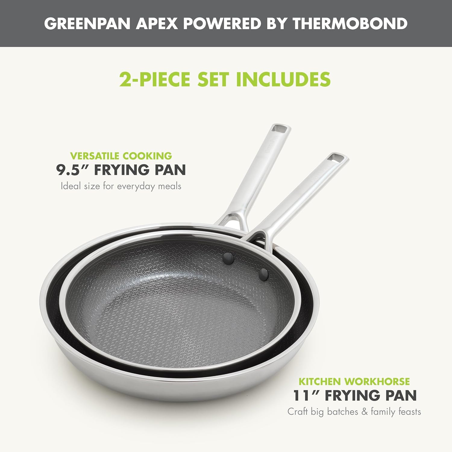 GREENPAN APEX: Hybrid Thermobond Technology fuses diamond-infused, PFAS-free ceramic nonstick with an etched stainless steel pattern for unmatched searing, effortless release, and pro-grade durability that’s 10x more metal-utensil safe.