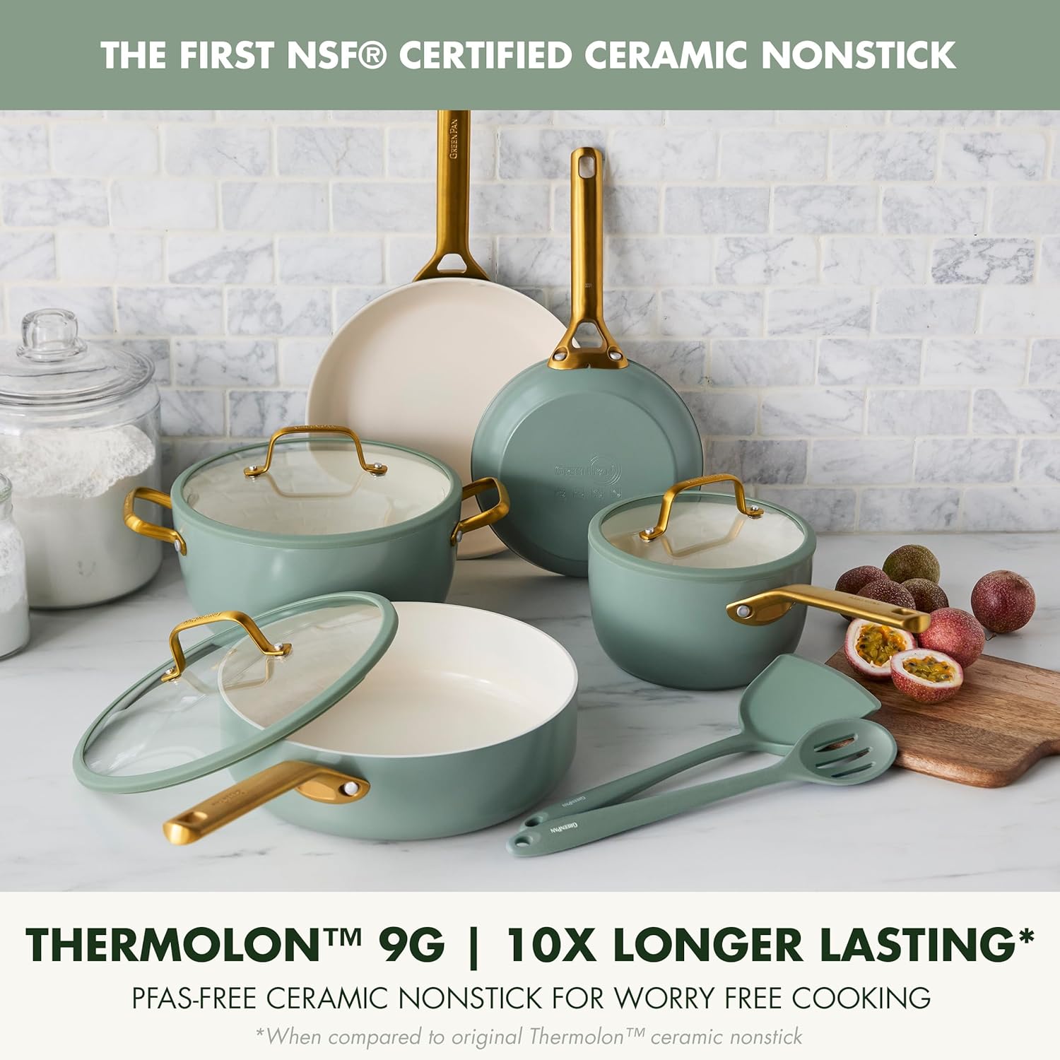 10X LONGER LASTING*: Thermolon 9G is the latest evolution in toxin-free cooking. It delivers supercharged performance, remarkable nonstick release, and next-level scratch resistance. The first NSF Certified ceramic nonstick, it’s free of PFAS for worry-free cooking.