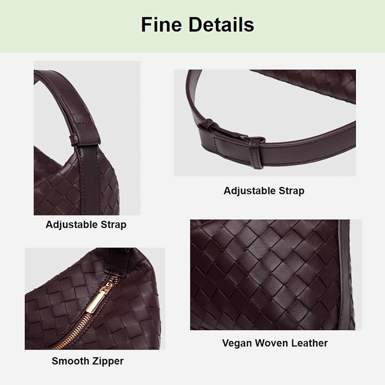 Unique Vegan Woven Leather: The tote handbag is made of vegan leather with a soft, full-grain leather-like look.