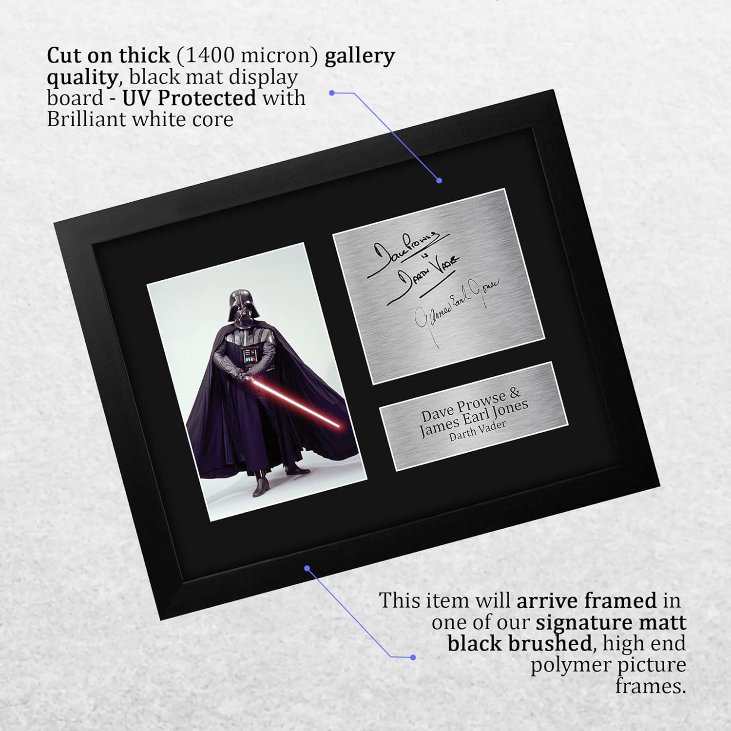 HWC Trading Dave Prowse & James Earl Jones USL Framed Signed Printed Autograph Star Wars Darth Vader Print Photo Picture Display – US Letter Size