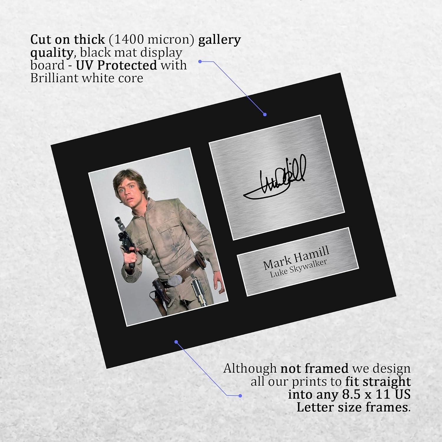Professionally made in our studio, this Mark Hamill display comes with a high-quality picture of Luke Skywalker alongside a printed copy of the actor’s autograph signature. Mounted in a matt black using an acid-free display board, it’s perfectly finished with Hamill’s name in a silver, printed plaque. Please note this print does not come framed. Makes the ideal Christmas/Birthday for fans of all ages, and best of all, it definitely won’t break the bank!