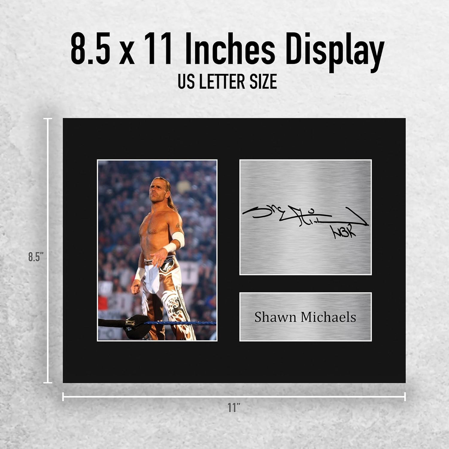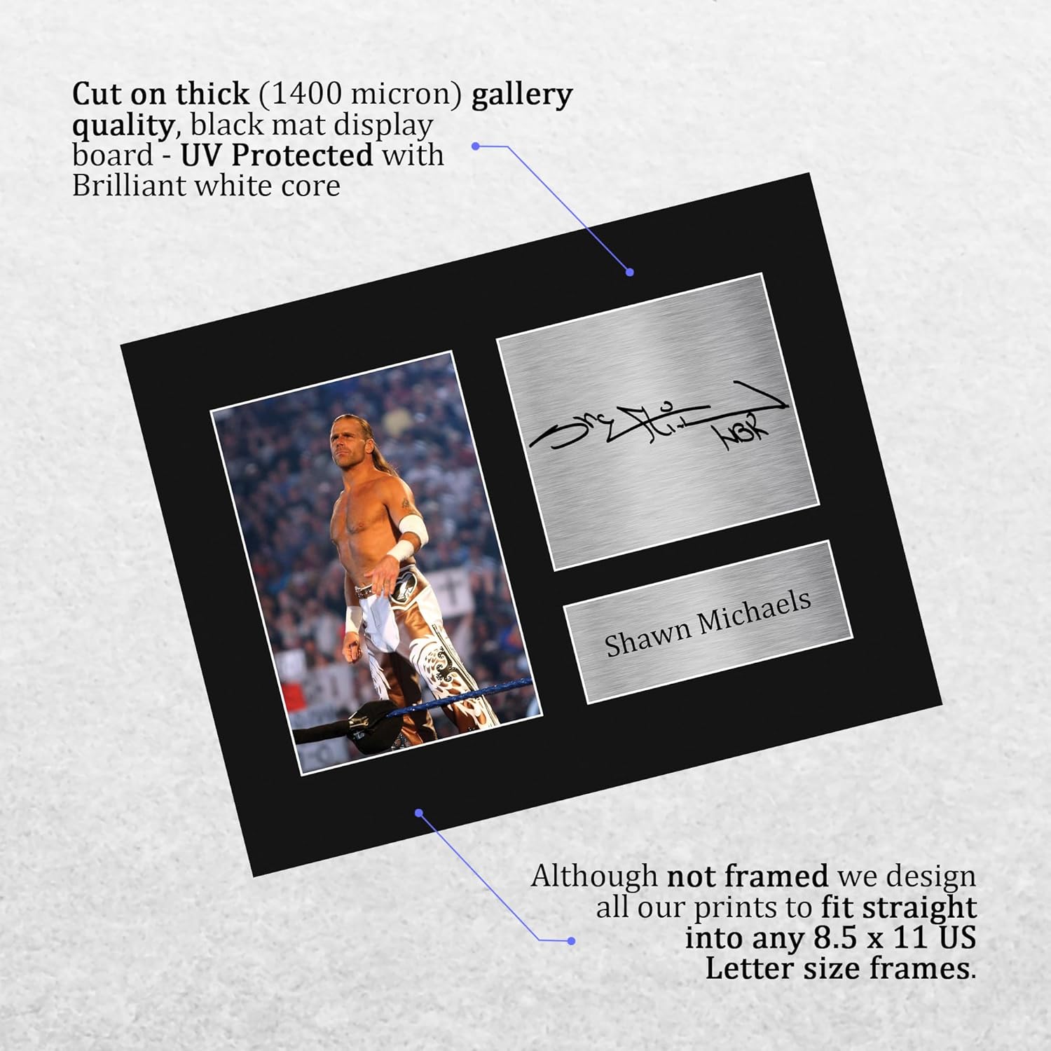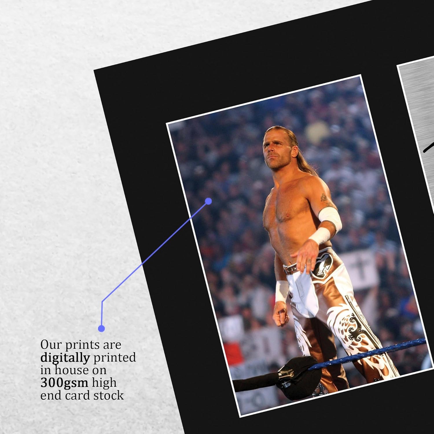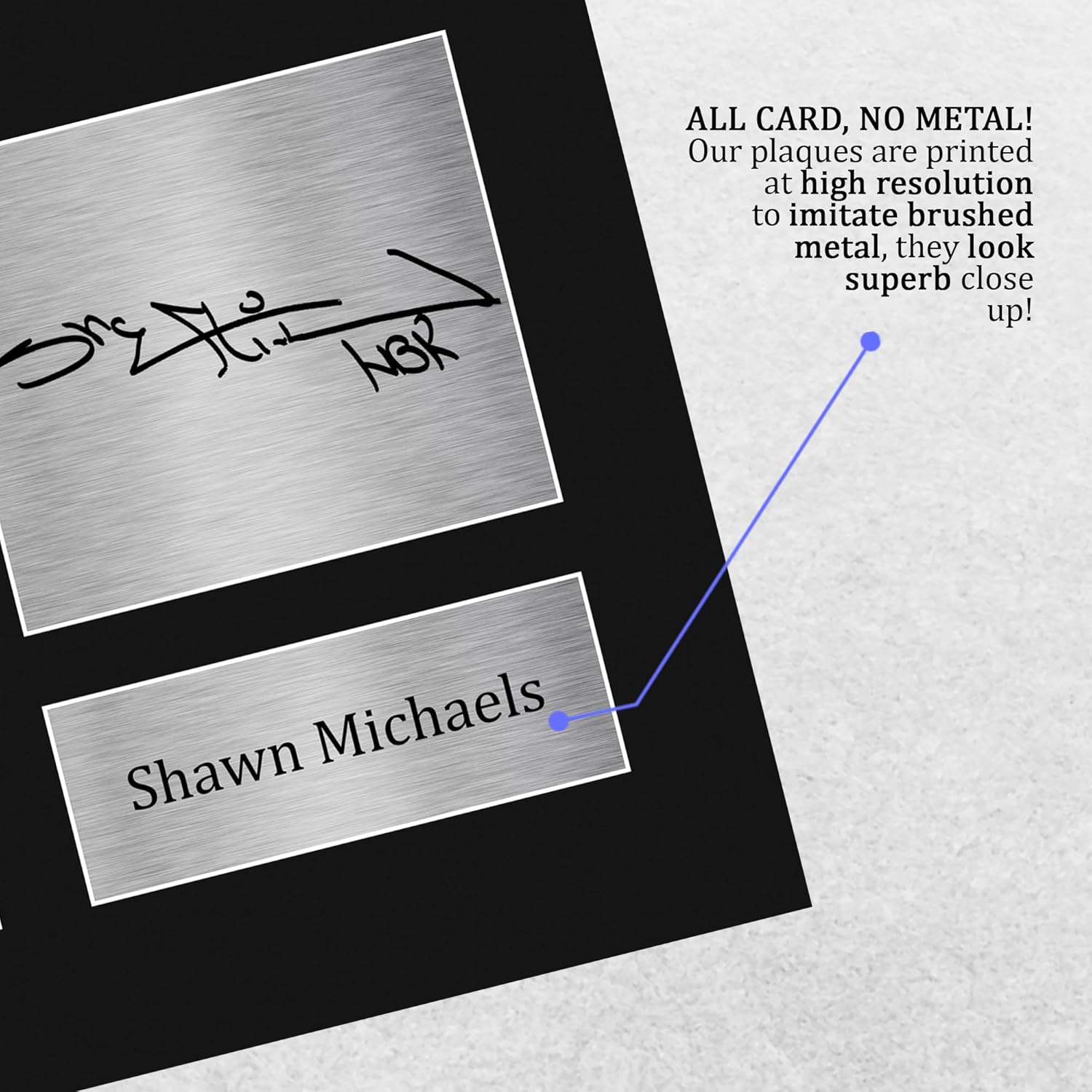 Professionally made in our studio, this Shawn Michaels Wrestling display comes with a high-quality picture alongside a printed copy of that famous autograph signature. Mounted in a matt black using an acid-free display board, it’s perfectly finished with Shawn’s name in a silver, printed plaque. Please note this print does not come framed. Makes the ideal Christmas/Birthday for fans of all ages, and best of all, it definitely won’t break the bank!