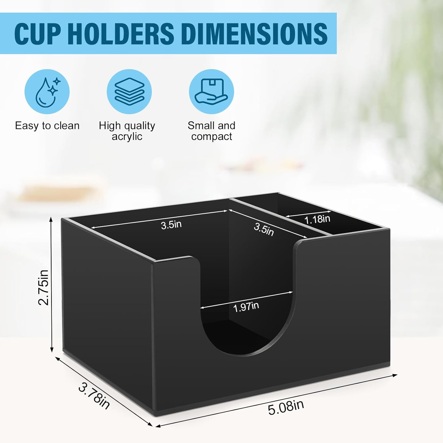All-in-One Storage Solution: The paper dessert cups cup holder is designed with 2 compartments for organising and separating your cups and spoons, say goodbye to messy countertops. Cup storage area size: 3.5 x 3.5inch, spoon storage area size: 1.18 x 3.5inch.