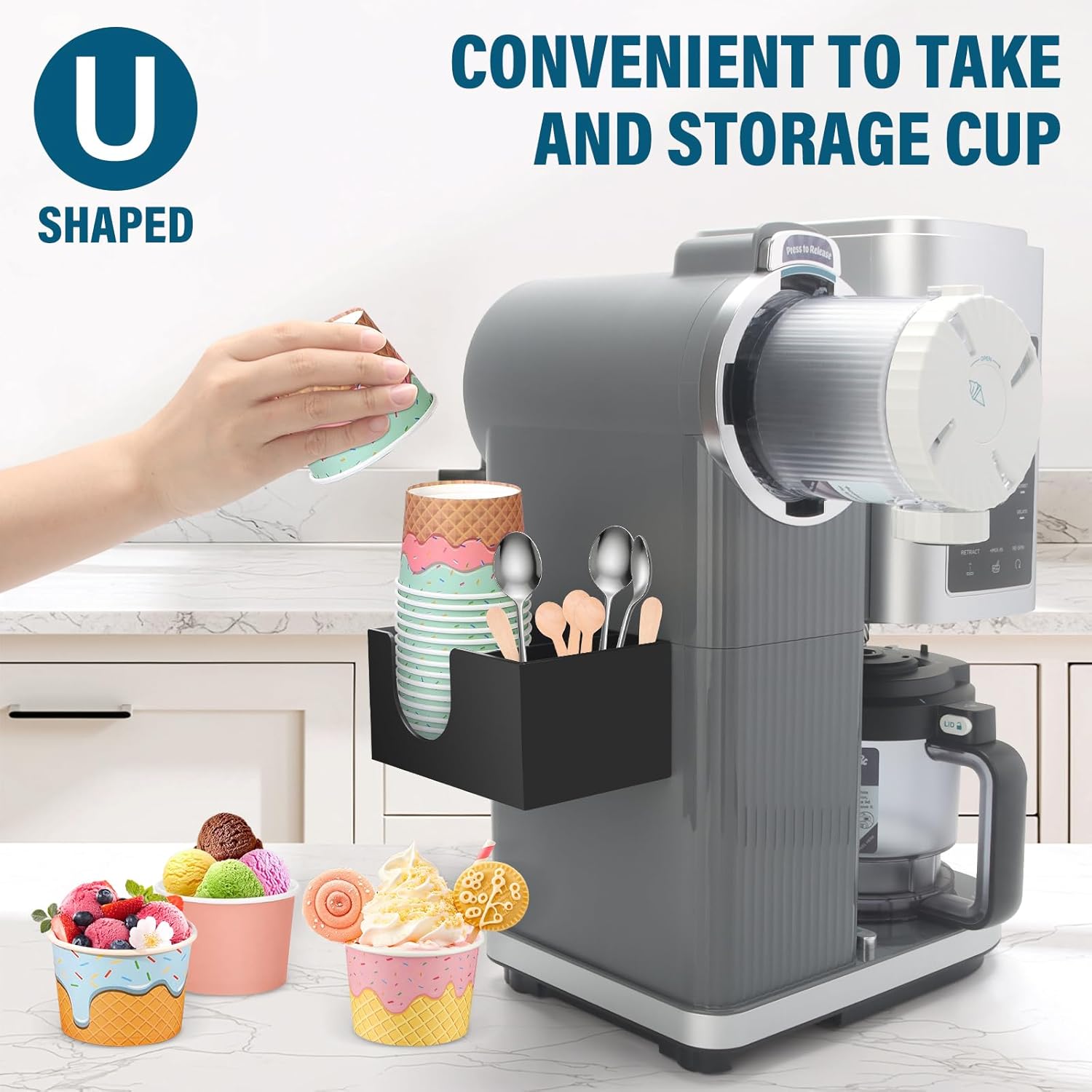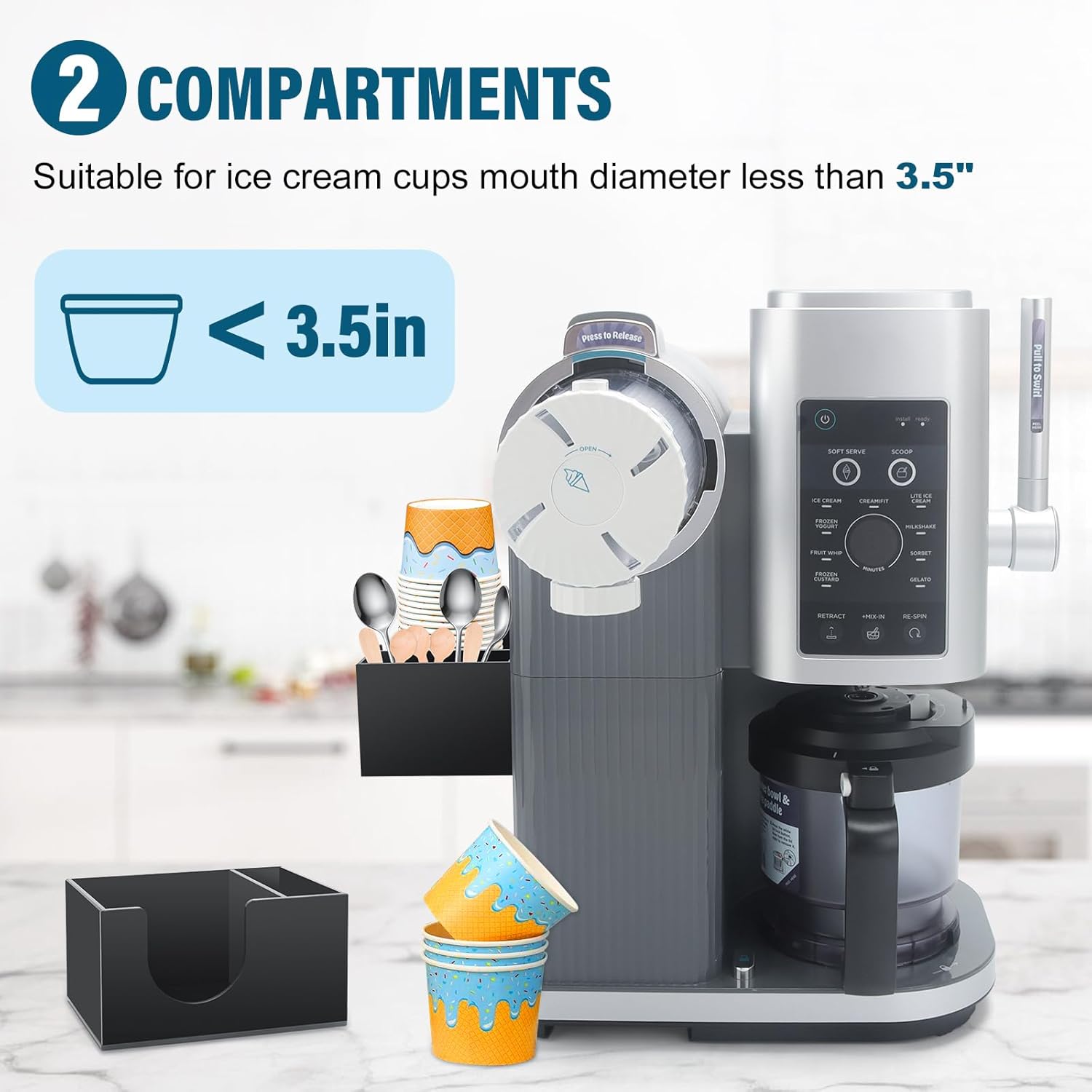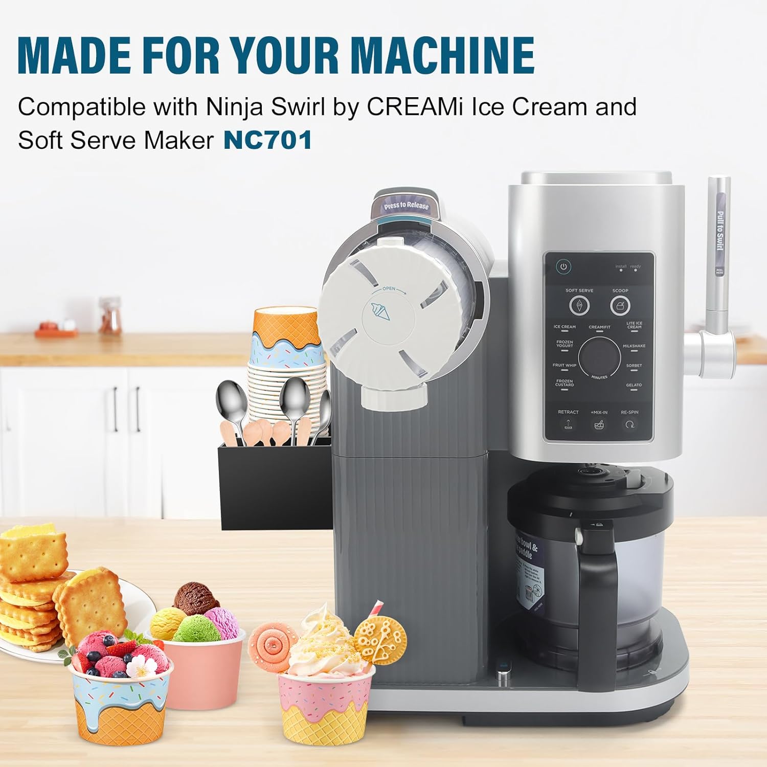 Compatible With Ninja NC701: Specifically designed ice cream cups holder for Ninja Swirl by CREAMi Ice Cream and Soft Serve Maker NC701. Grab & go convenience, your efficient ice cream making partner, keeps storage organized.