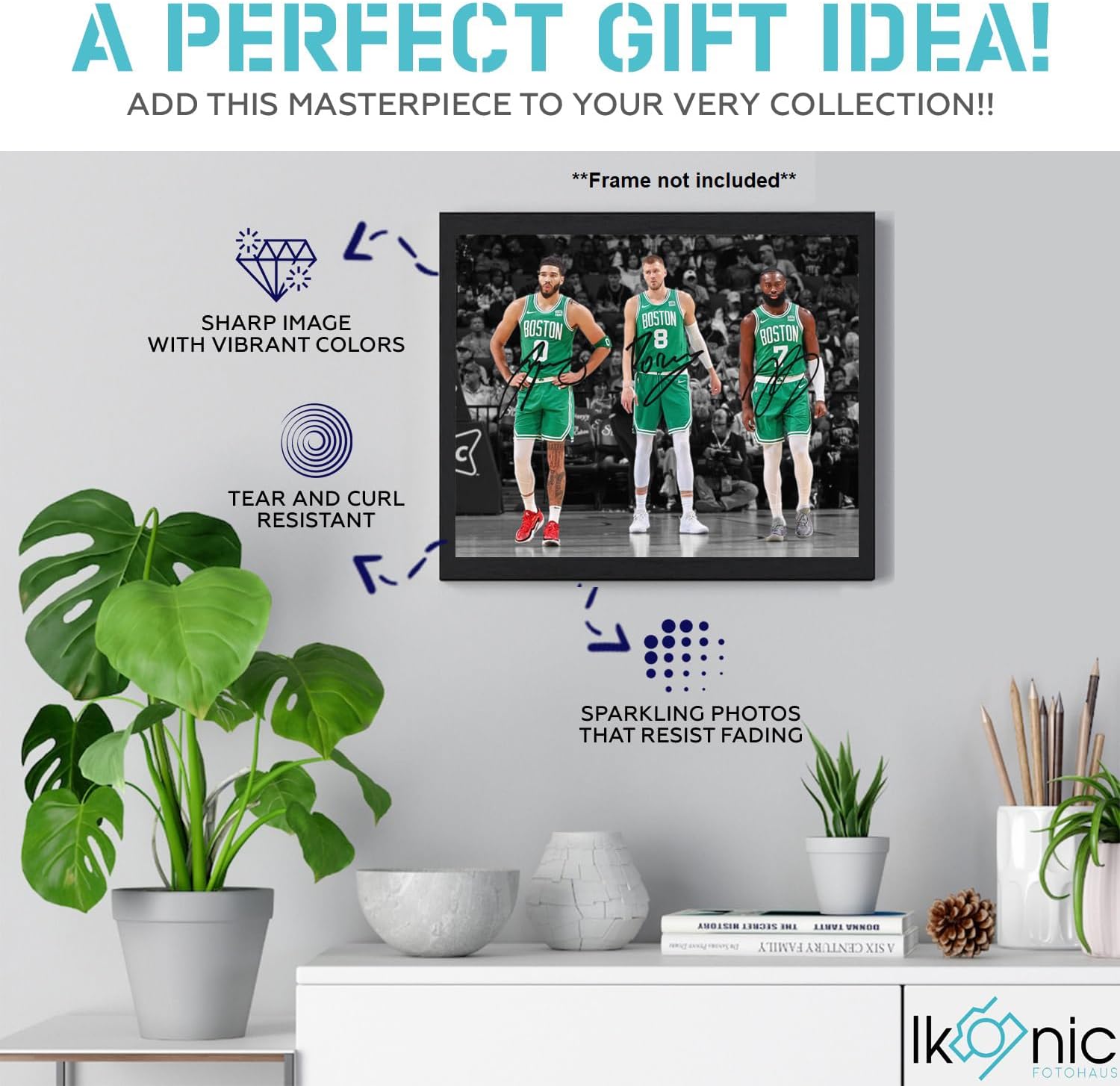 Ikonic Fotohaus Jayson Tatum Jaylen Brown Kristaps Porzingis Signed Photo Autograph Print Wall Art Home Decor