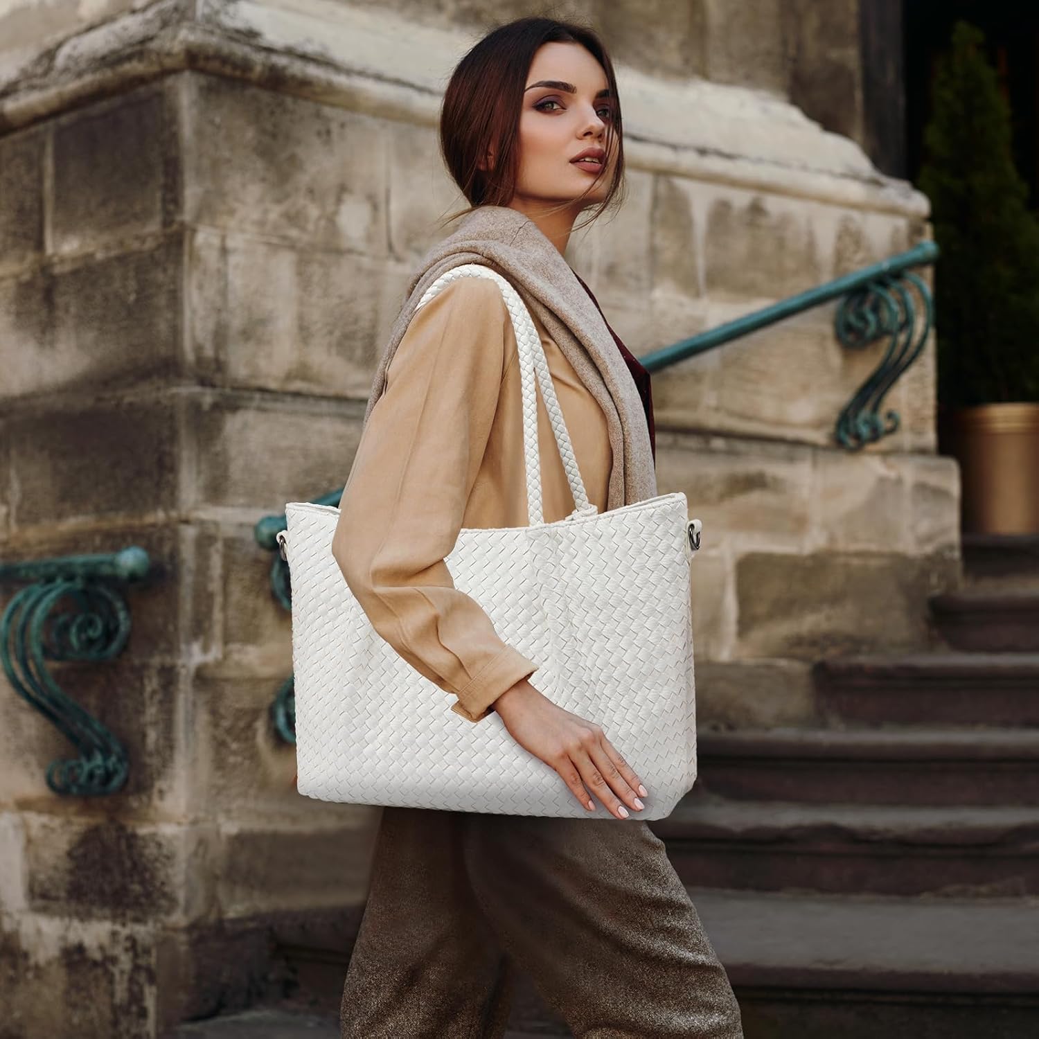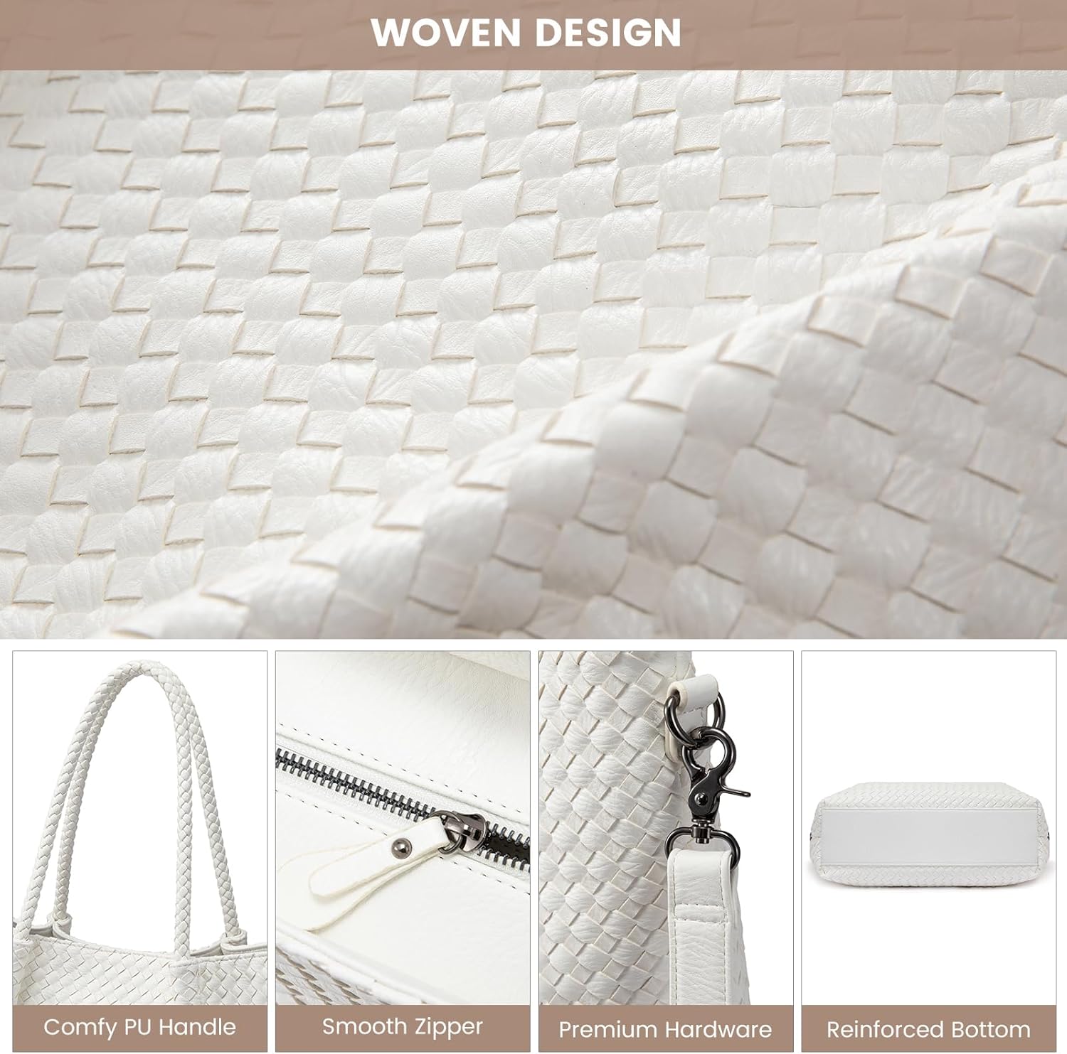 LOVEVOOK Woven Tote Bag for Women Vegan Leather Shoulder Handbag for Travel Work Crossbody Purse