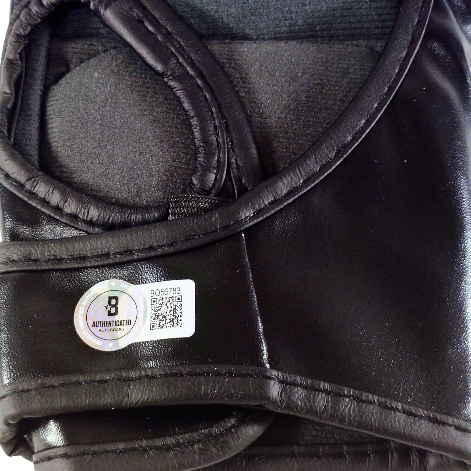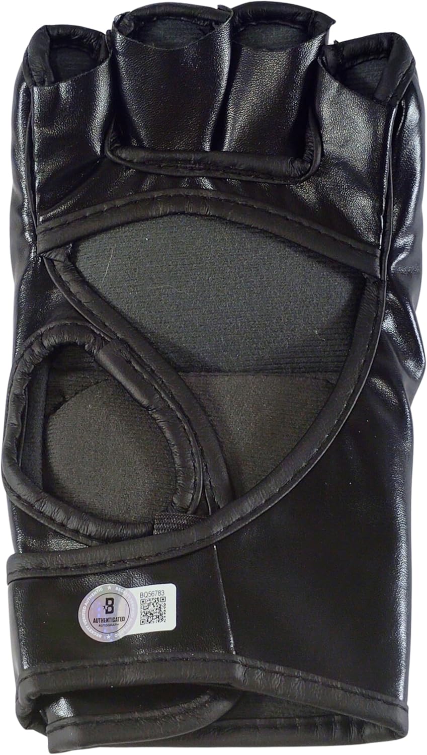 This is a Mark Coleman autographed UFC glove. Mark Coleman signed the glove in gold sharpie. This signature has been examined and authenticated by Beckett Authentication Services (BAS), and has been deemed authentic. The Beckett Certificate number is BQ56783. **Please Note: As of May 2022, Beckett Autograph Authentication Services no longer will be issuing Certificate of Authenticity cards. Please scan the QR code on the certification sticker, to confirm the authenticity, and all pertinent information, within the Beckett Authentication Database. This change will start with the certificate number sequence BF.
