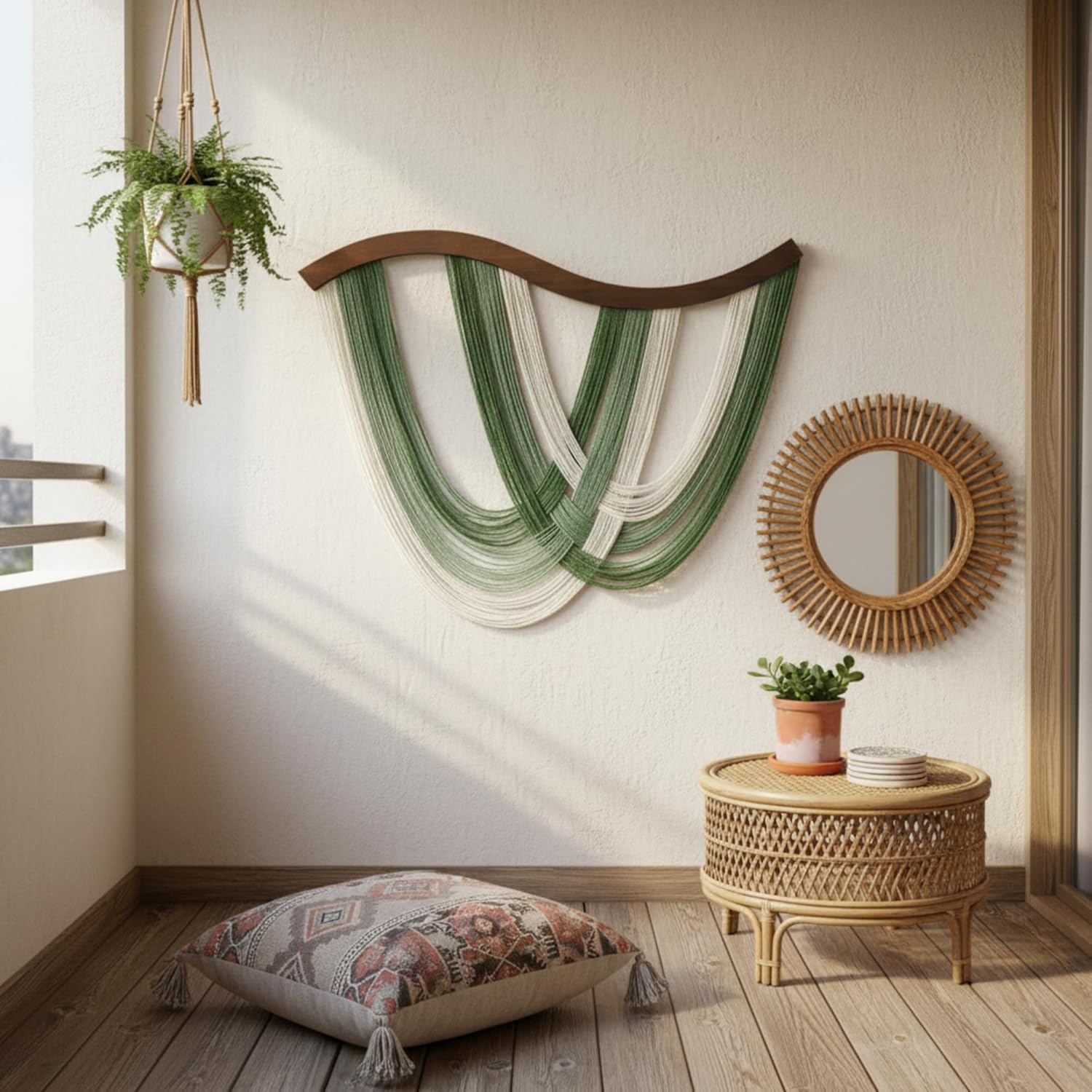 Hand-woven Fiber Craftsmanship: this wall hanging tapestry is crafted from soft cotton rope and wood through exquisite hand-woven techniques; The materials ensure durability while providing a comfortable touch, and the meticulous weaving process showcases fine craftsmanship, making it not just a decoration but also a work of art that adds texture to your space