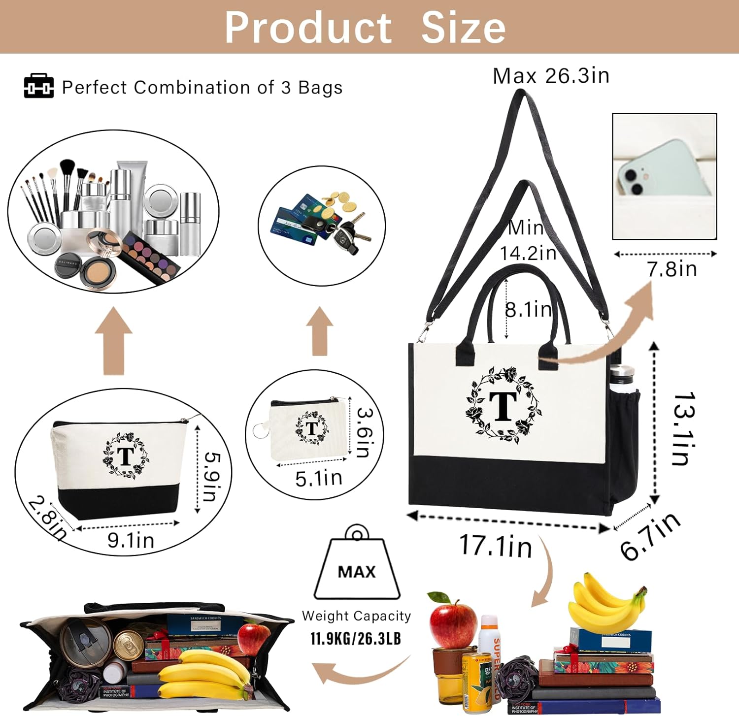 COME WITH A COSMETIC BAG, Card bag (key bag) initial tote bags for women