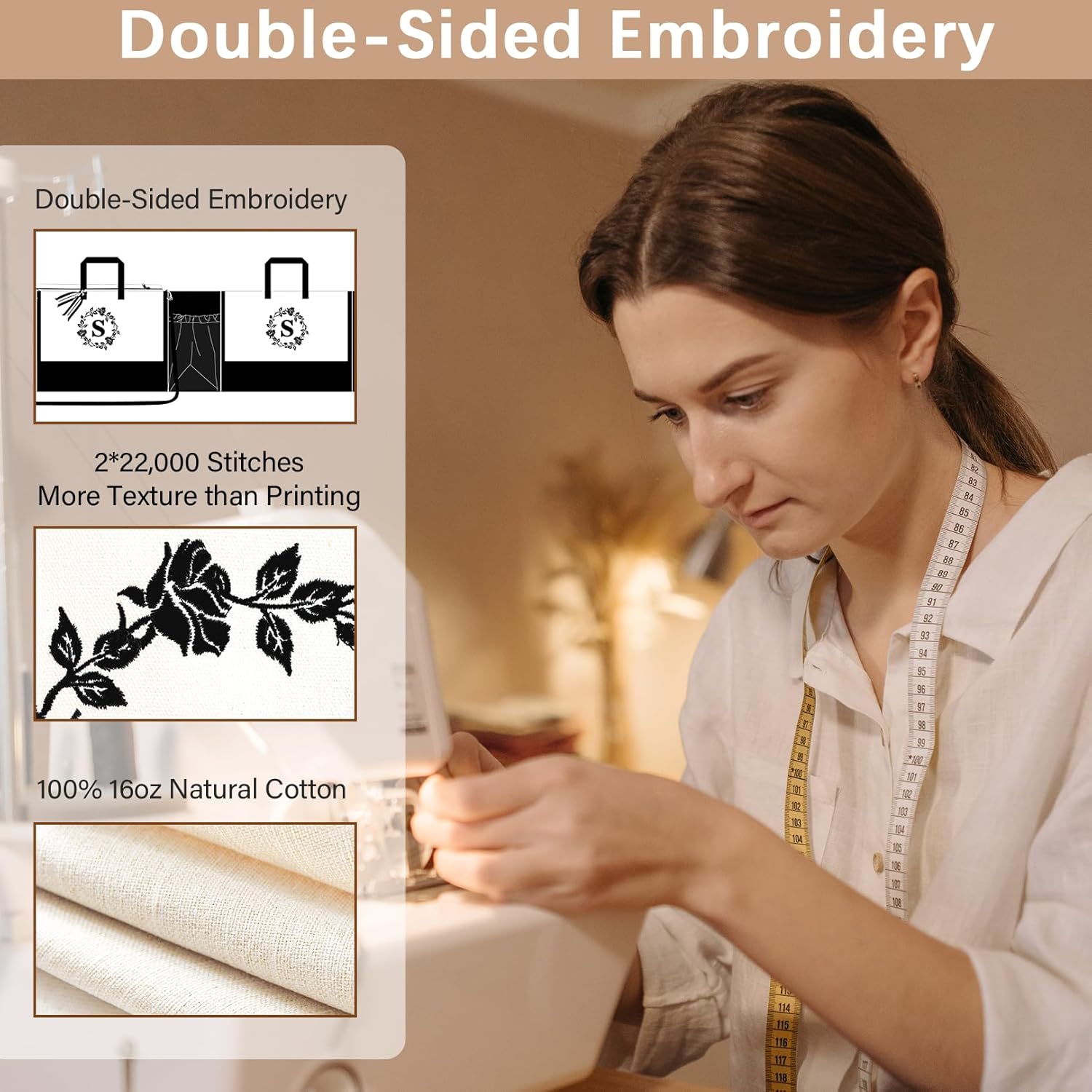 Double-sided high-density embroidery monogram tote bags for women