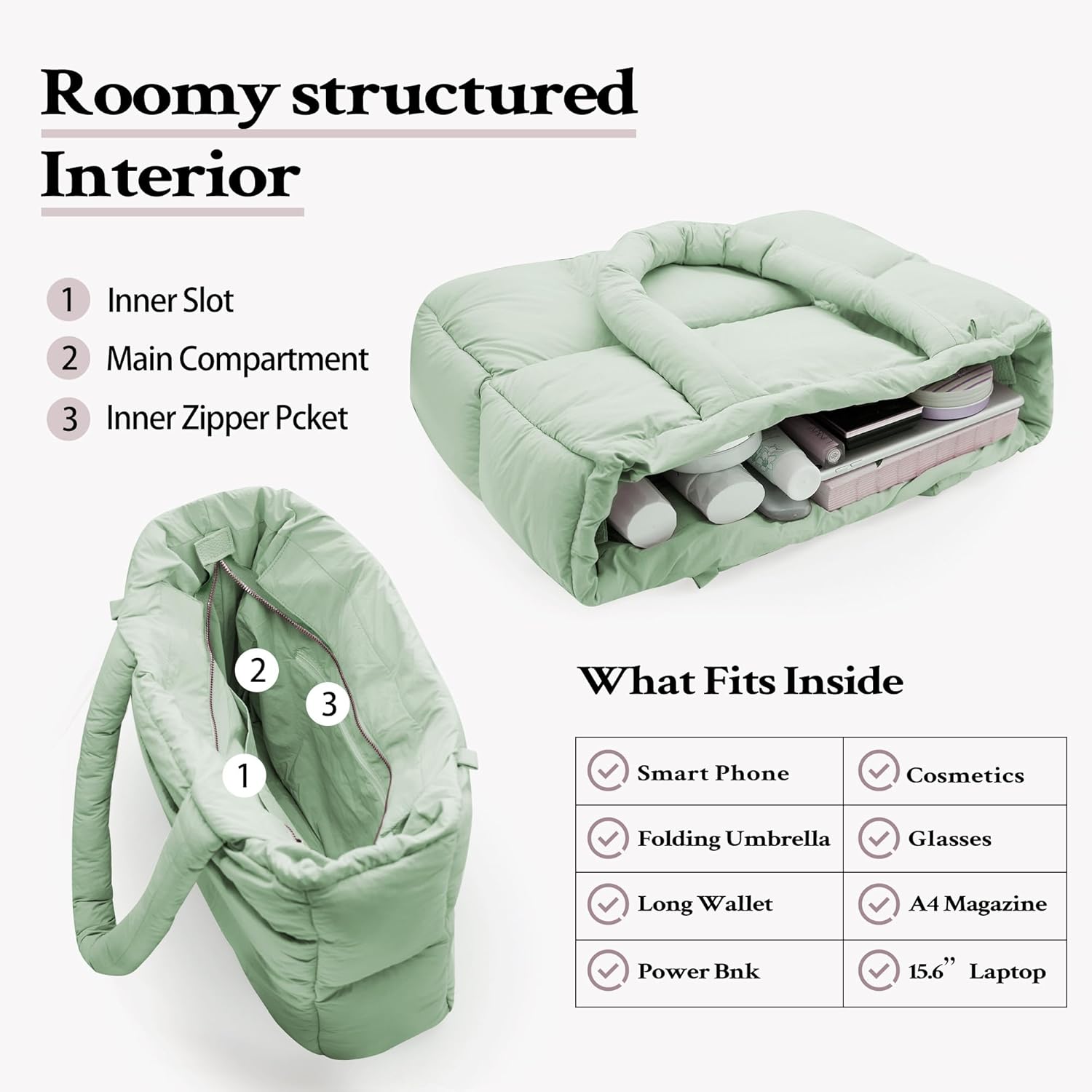 NAARIIAN Puffy Tote Bags/Woven Tote Bags/Puffer Crossbody Bags/Quilted Tote Bags