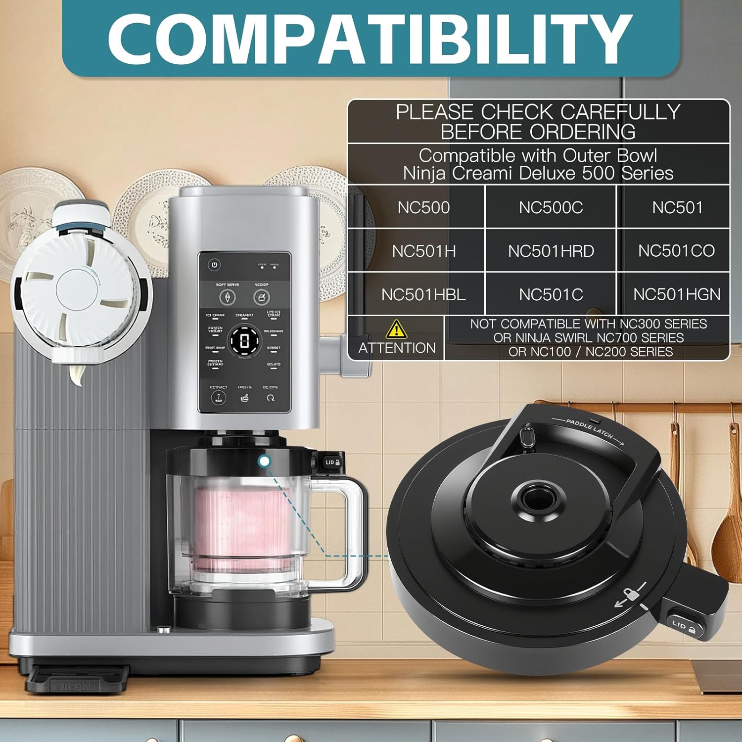 COMPATIBILITY – Our creami lid replacement are ideal for the ninja creami NC500 and NC501 series ( including NC500, NC500C, NC501, NC501H, NC501HRD, NC501CO, NC501HBL, NC501C, NC501HGN ). Please carefully read the description before making a purchase to ensure that you are purchasing the correct accessory. It is NOT fit the NC100, NC200, NC299, NC300 or NC700 Series
