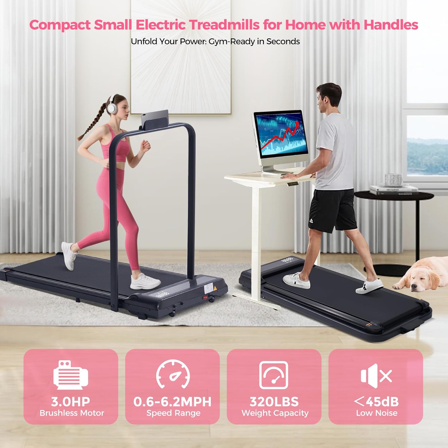 Portable Treadmill with Handles, 0.6-6.2MPH Compact Walking Pad with Handle Bar, 3.0HP Electric Walking Pads Treadmills for Home Small, 320LBS Home Small Under The Desk Treadmill for Small Spaces