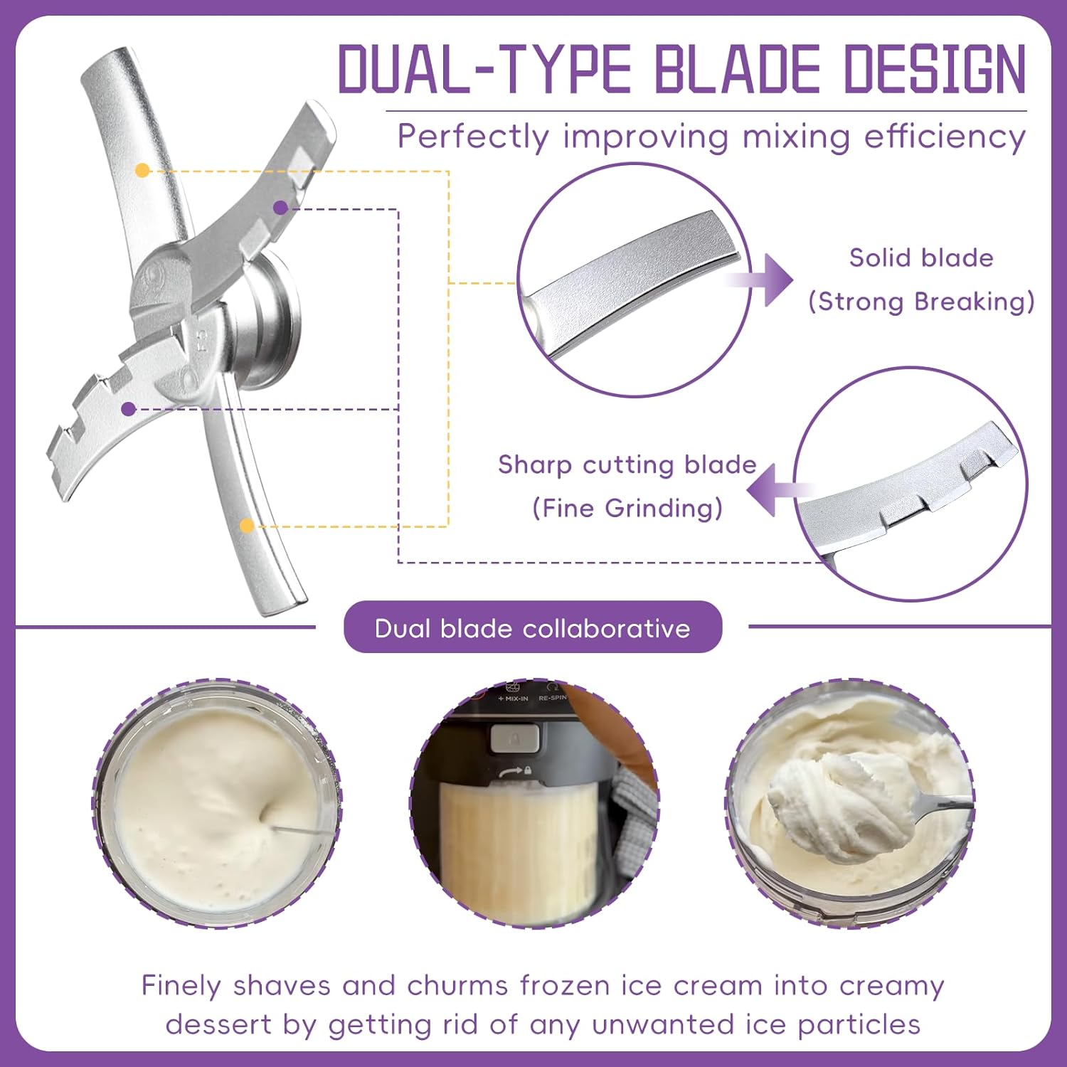 🍨[𝐃𝐔𝐀𝐋 π“π˜ππ„ 𝐁𝐋𝐀𝐃𝐄𝐒]-Dual blade collaborative work, perfectly improving mixing efficiency. Solid blade (strong breaking) & Sharp cutting blade (fine grinding). Ensures a silky smooth texture and zero ice residue. Quiet mixing process