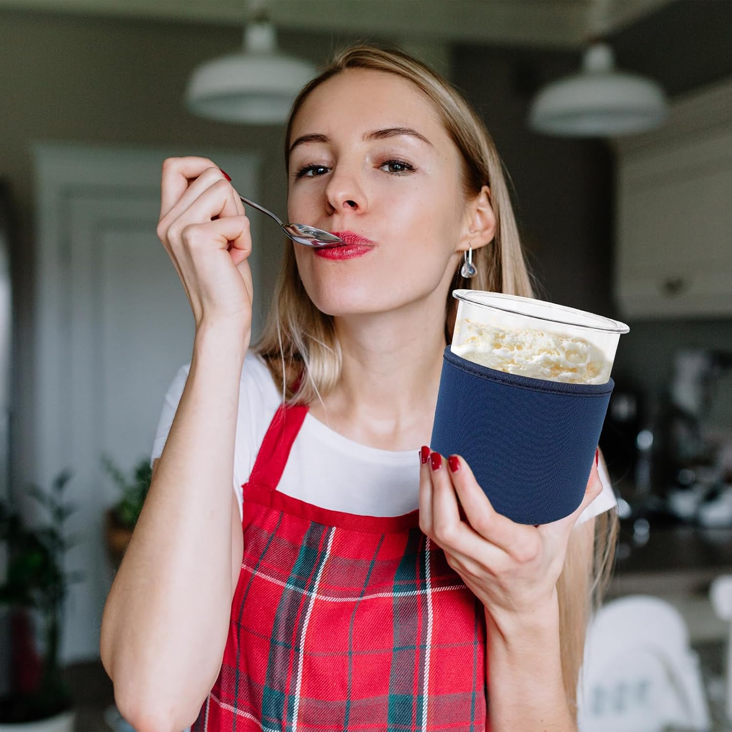 Stop Condensation and Spill: You can put this sleeve directly over your pint container after making ice cream, which will minimize water spots and keep your hands dry and warm. No need to worry about puddles on the table and slippery hands when you’re enjoying your ice cream.