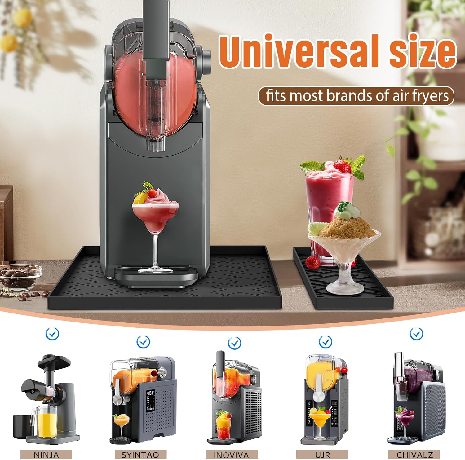 2,2in1 Part Design:The main mat provides a spacious and heat-resistant surface to hold the slushie machine & ice cream maker, ensuring that the countertop stays clean and prevents liquid spills. It also comes with a small removable silicone mat that can be easily removed and used separately.