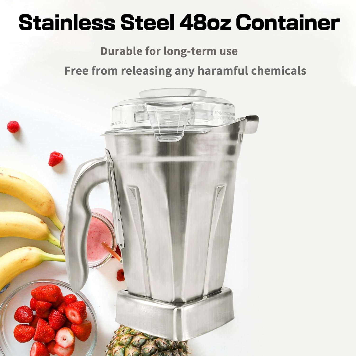 【Easy to Clean】Cleaning this replacement stainless steel container for Vitamix is quick and simple. Just add warm water and a few drops of dish soap, blend for 30 seconds, and the container will be thoroughly cleaned—saving you time and effort. After cleaning, be sure to dry the container to keep the motor dry and maintain optimal performance. The container is dishwasher-safe, but the lid is not suitable for the dishwasher. The lid is made from BPA-free materials, ensuring safety and peace of mind with every use.