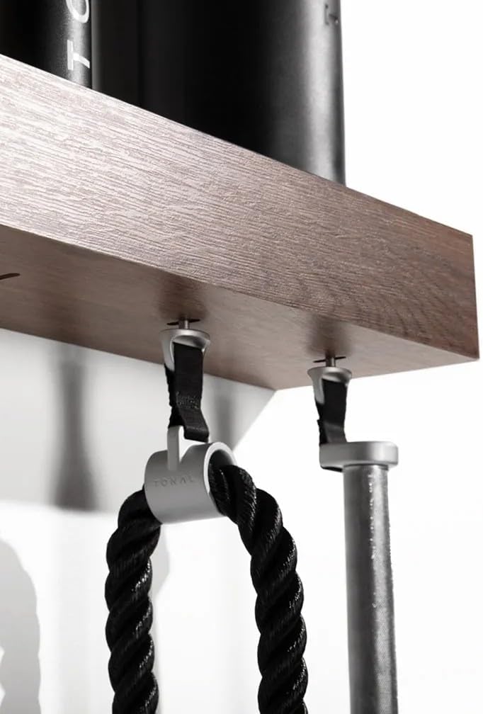 Our floating shelf is the perfect way to store all your Tonal accessories. Its sleek, versatile design makes this an easy fit with any style room. Available in Coffee Oak, as well as Matte Black and Light Aged Ash.